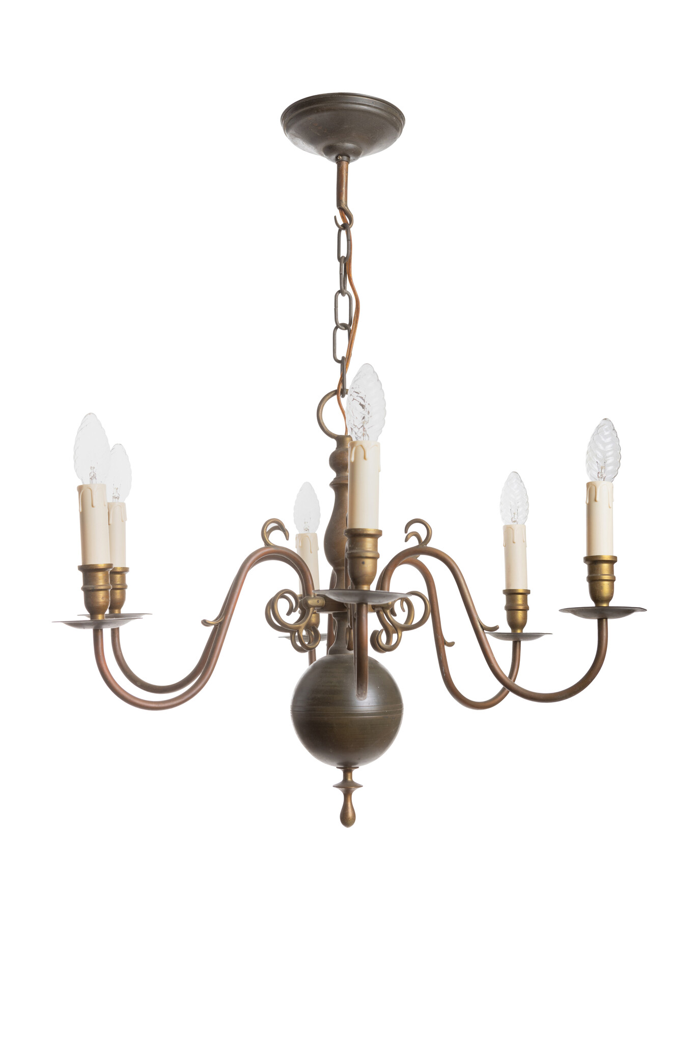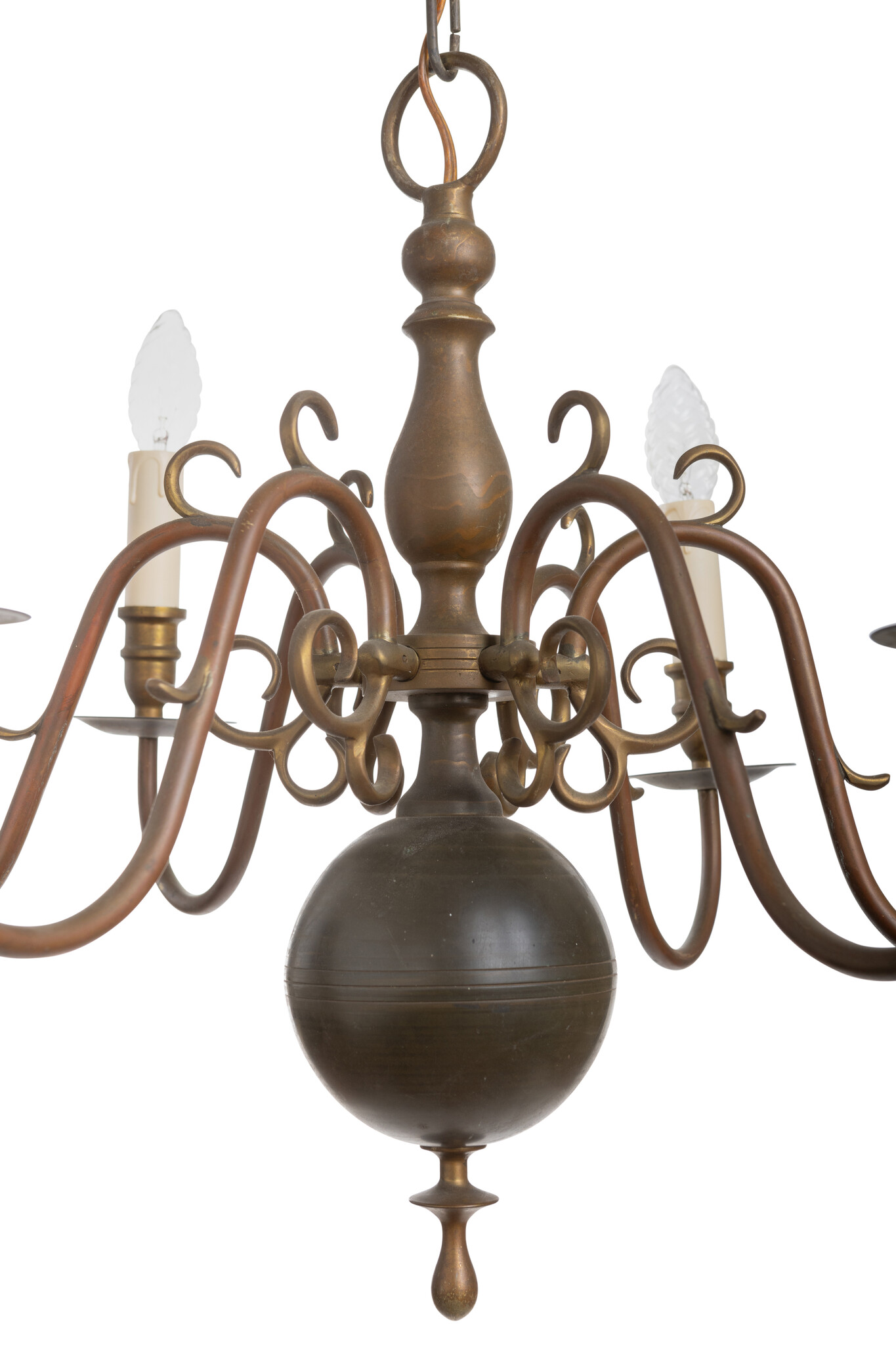 Old chandelier, a so-called ball chandelier, after the ball that is incorporated at the bottom of the lamp.