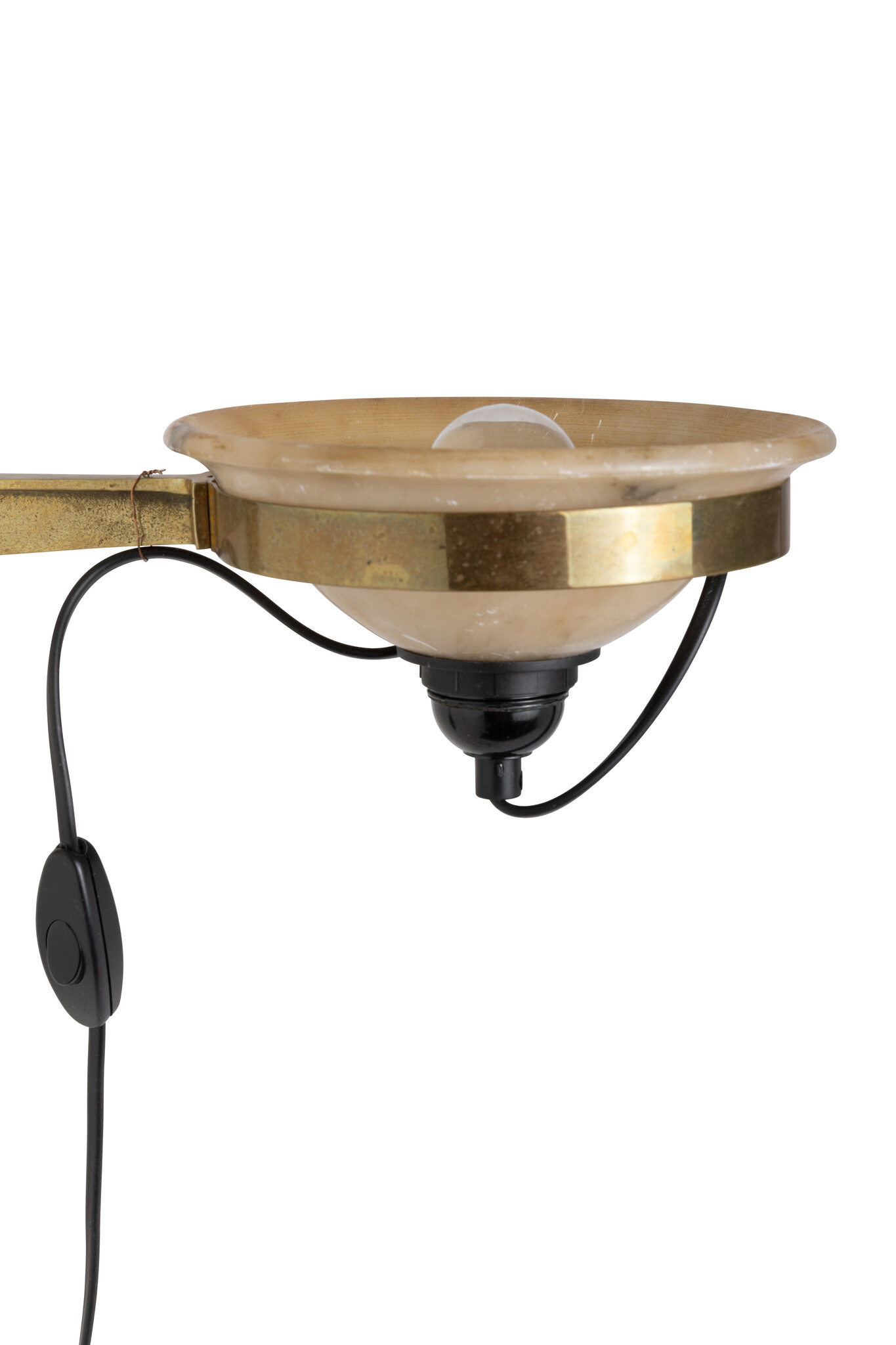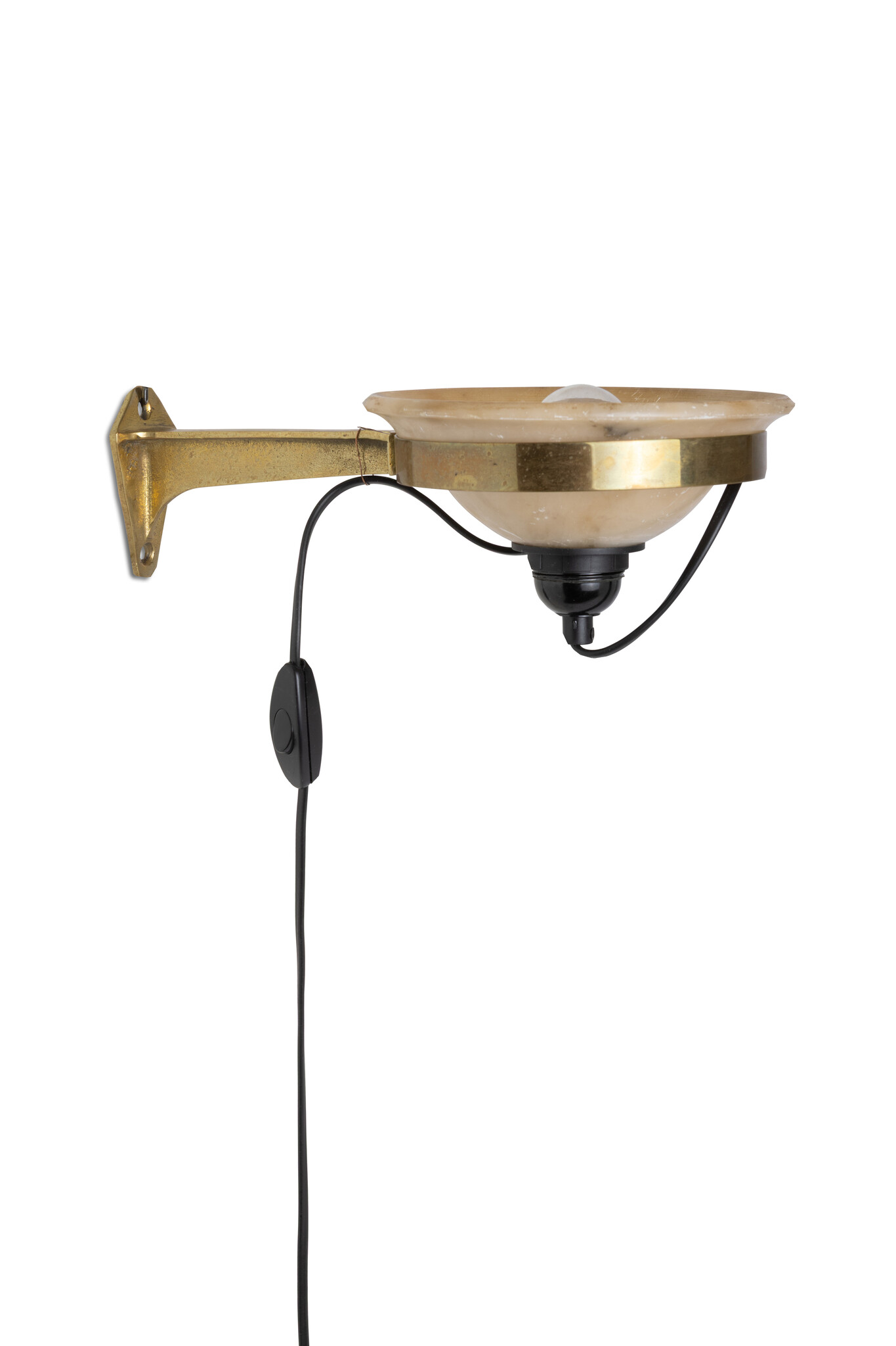 The wall lamp has a black cord with a switch and plug.