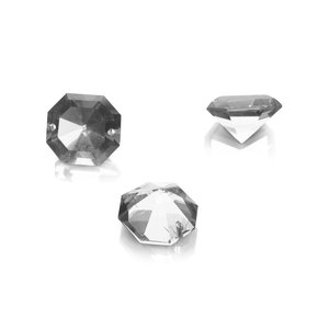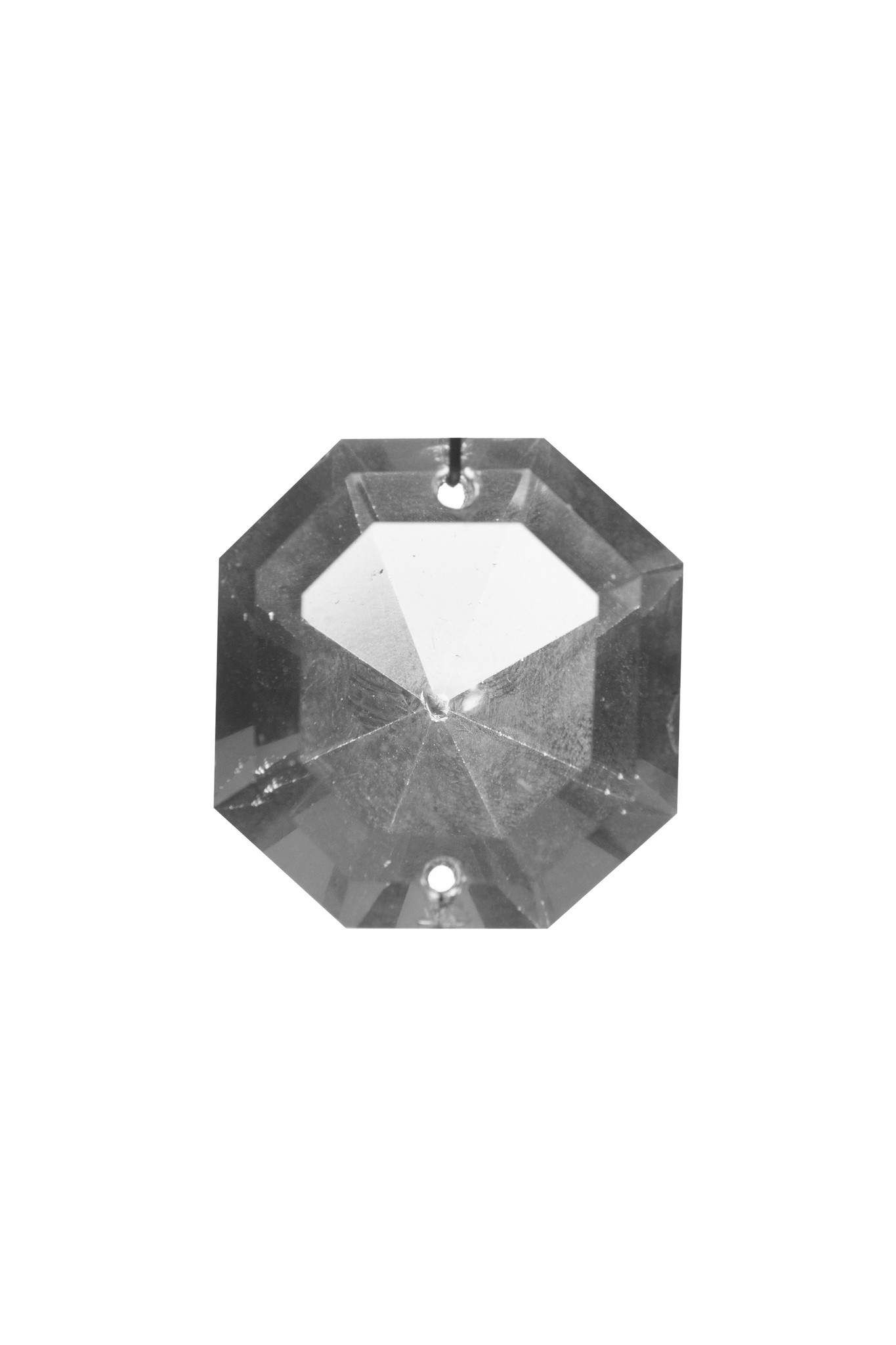 It has a hole on both sides (top and bottom) for the connection of other chandelier glass.