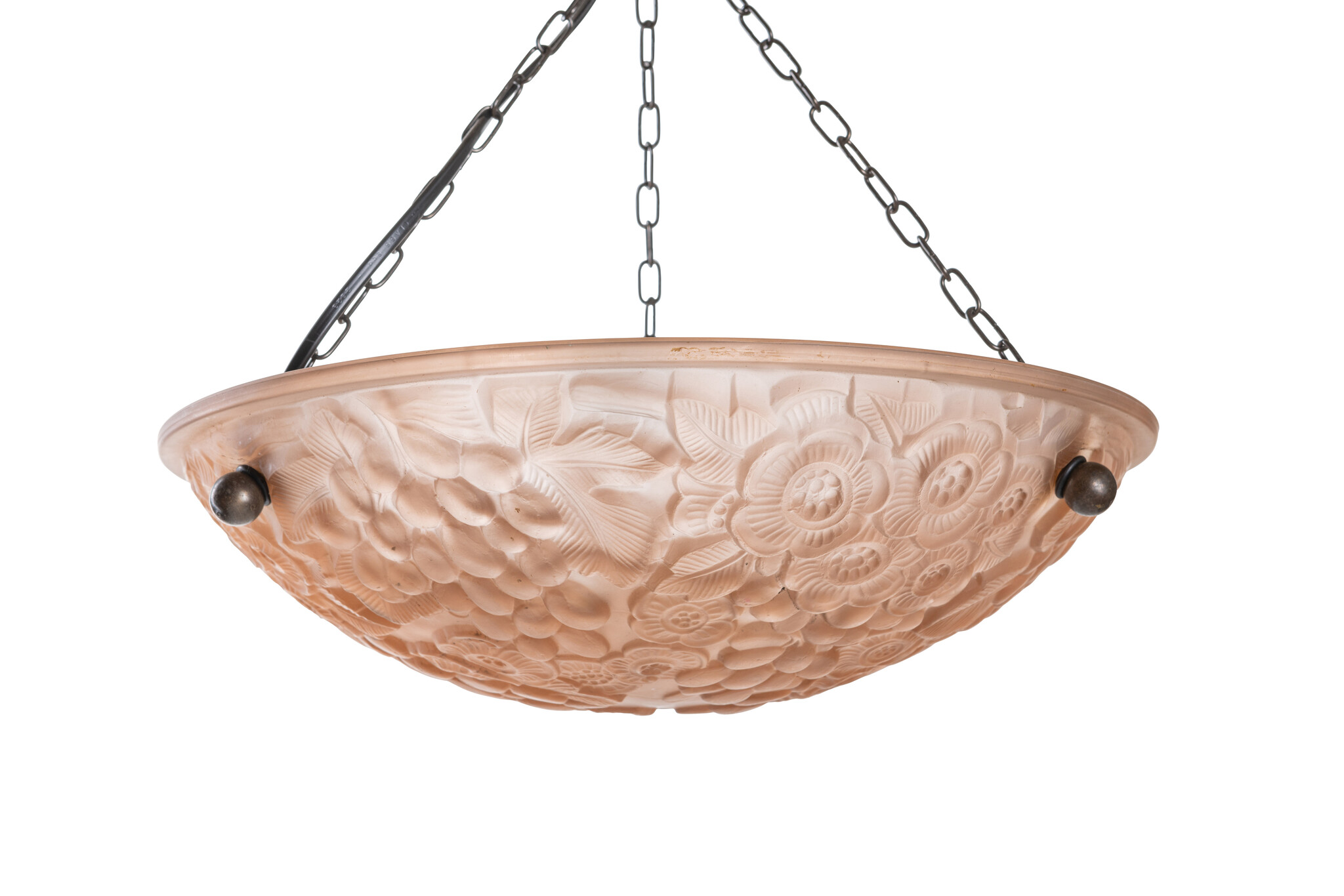 The glass hangs on three chains.