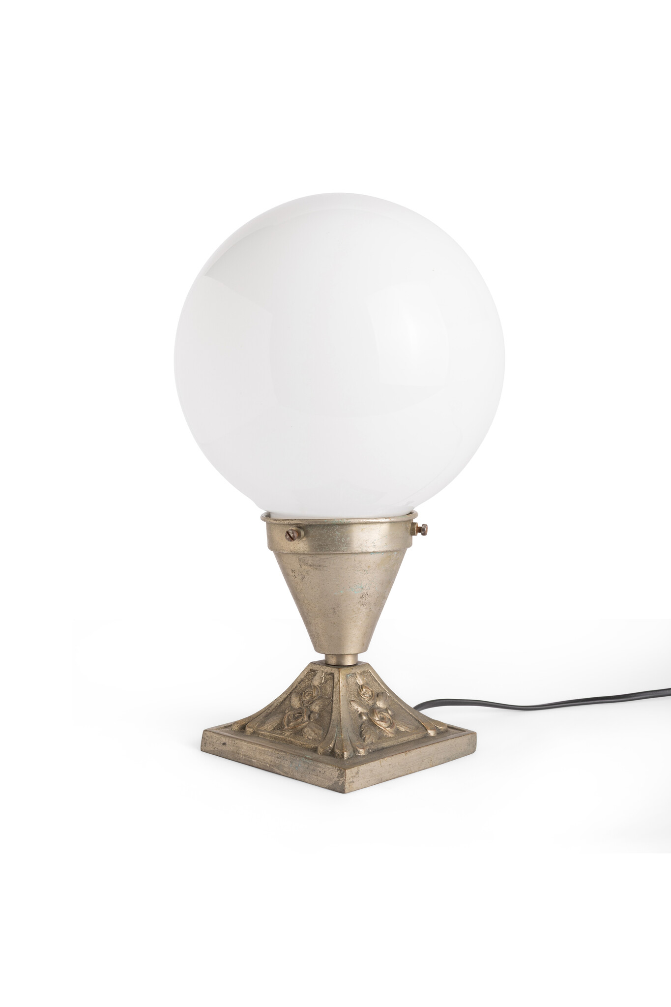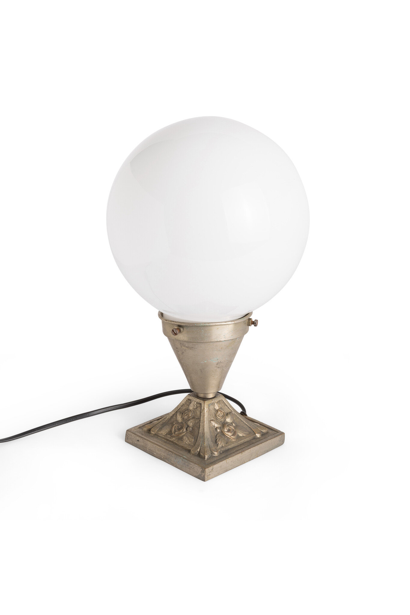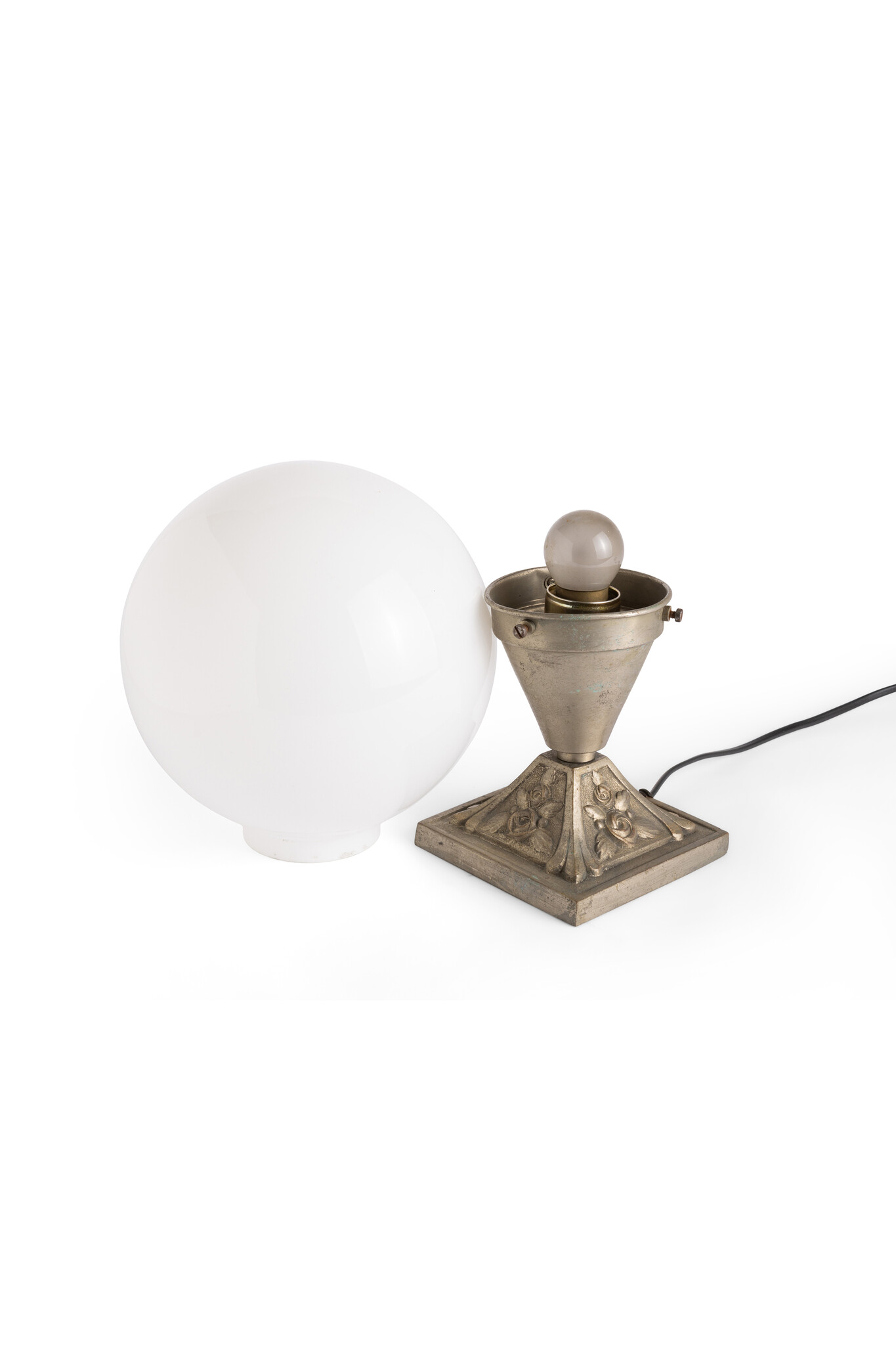 Topped with a white glass globe.