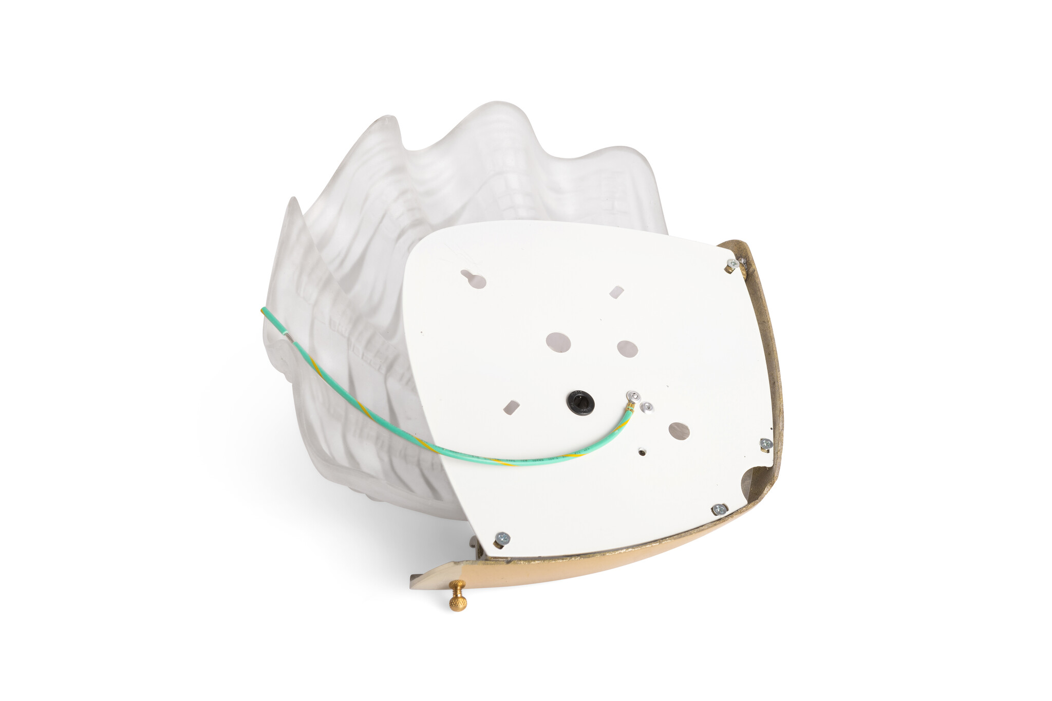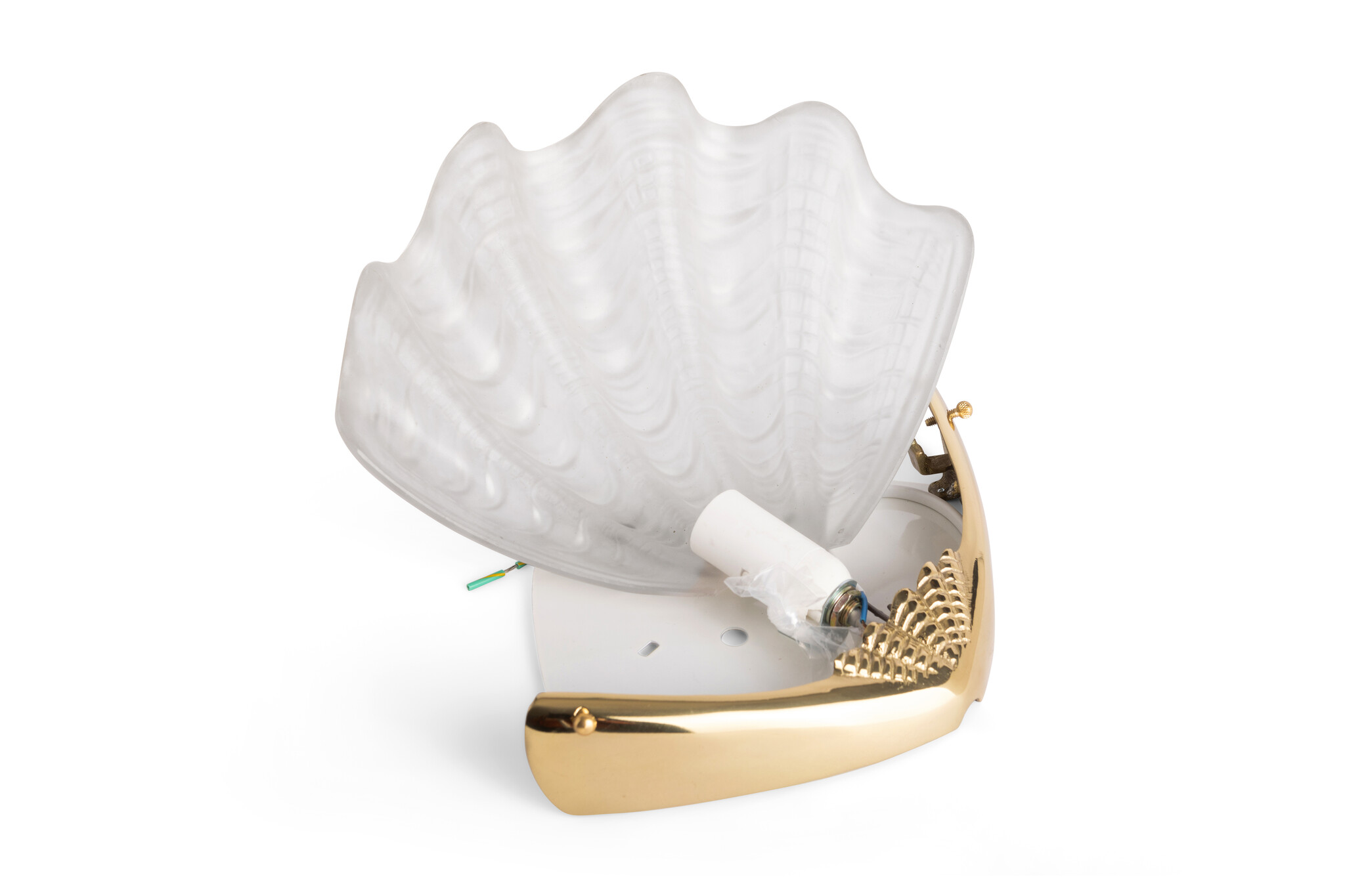 Glass wall shell, matt glass and a gold-coloured brass fixture.