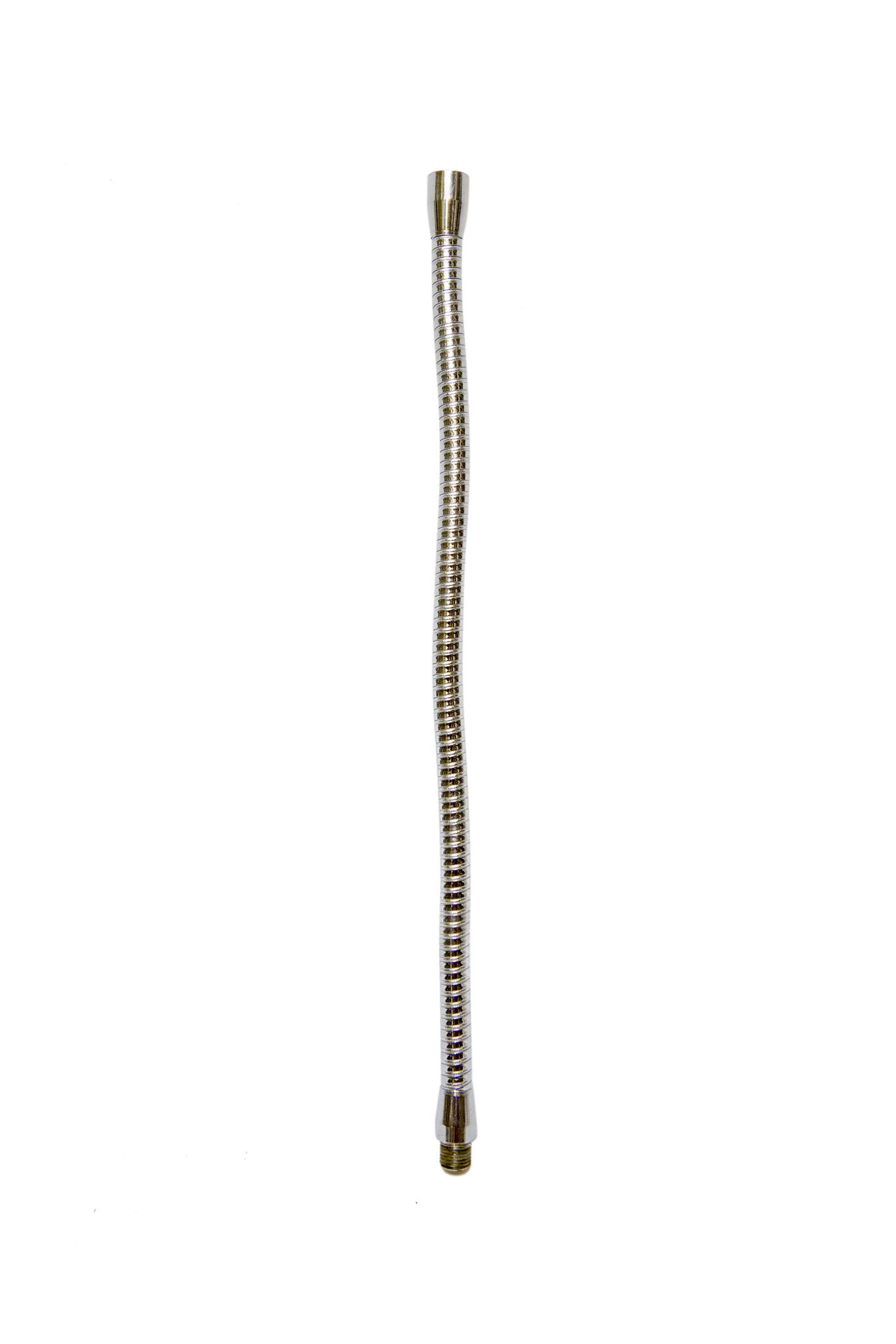 This is a silver-coloured bendable pipe, with a total length of 30 cm (12 inch) (Threaded rod at male side not included). The material is chrome coated brass.