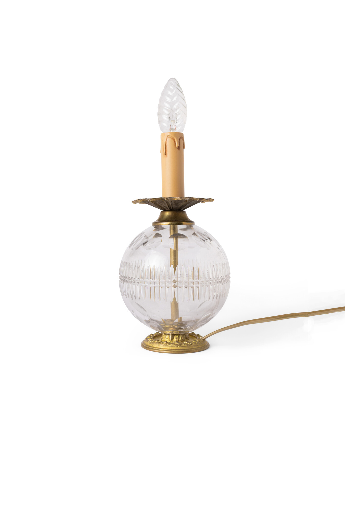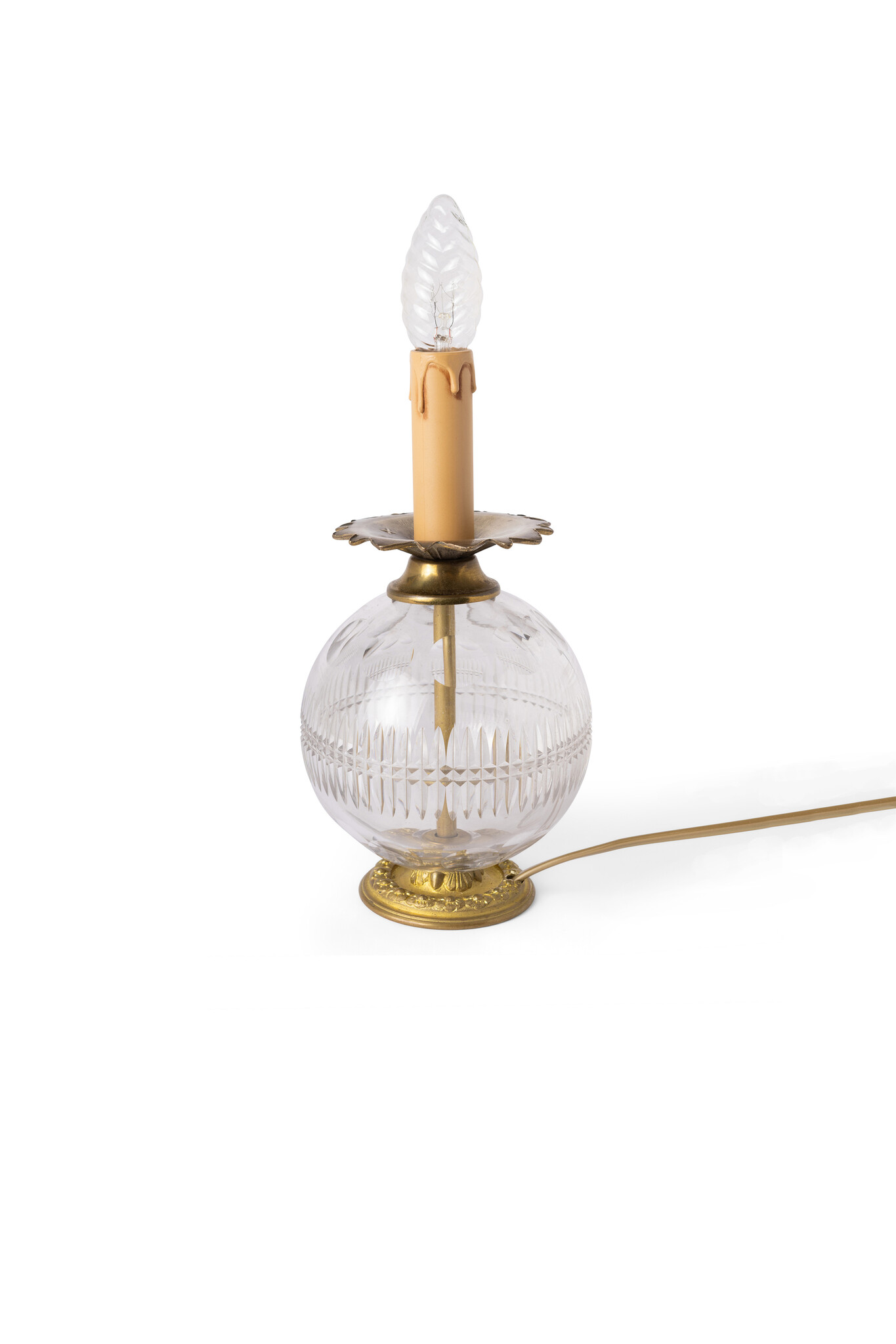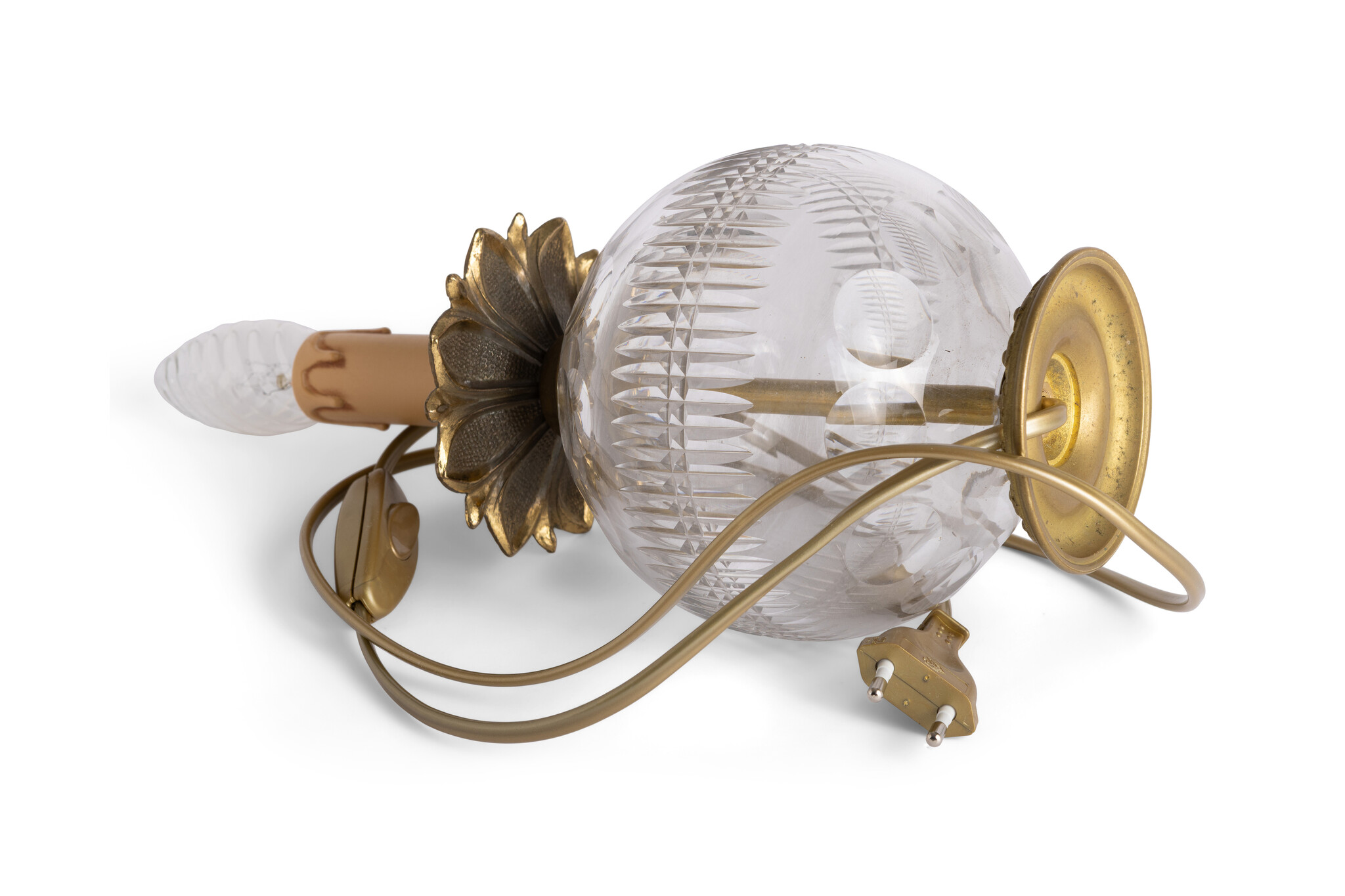 Classic antique table lamp, a mix of clear and cut glass and brass.