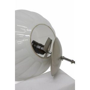With a strain relief (in connection with a cord) or adjusting ring (in connection with a rod or chain), you clamp the glass shade between the cover plate and the glass support.