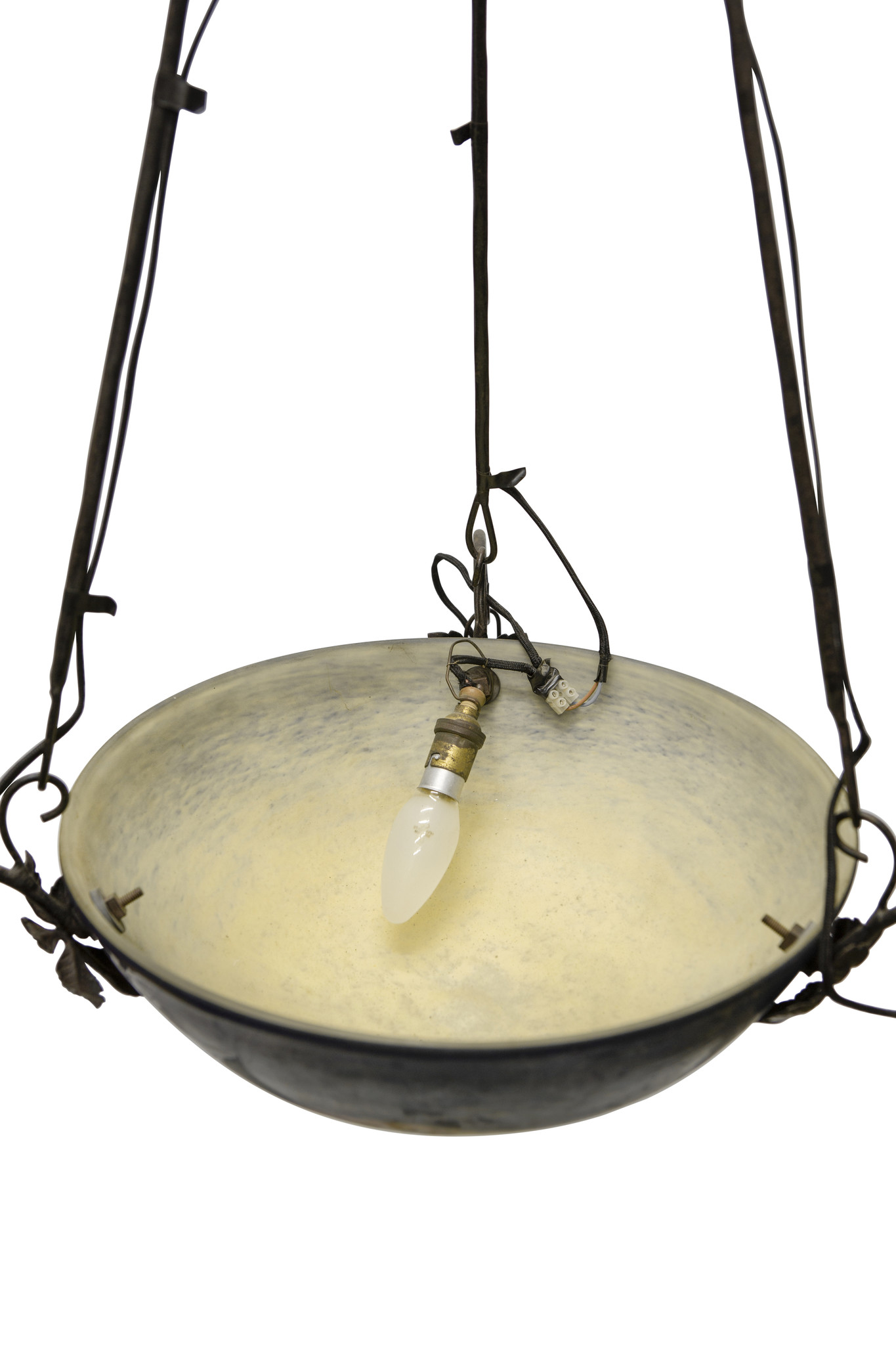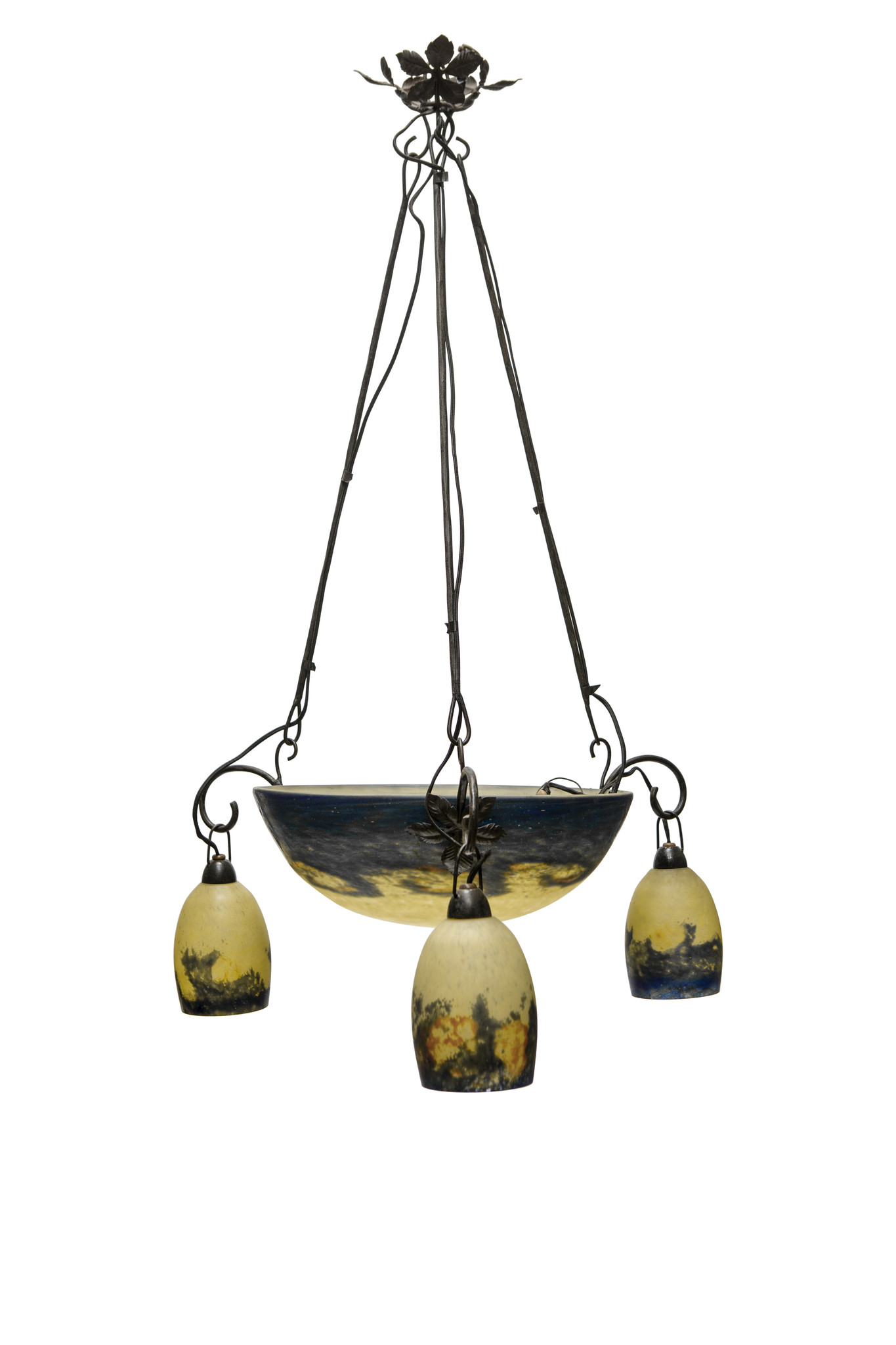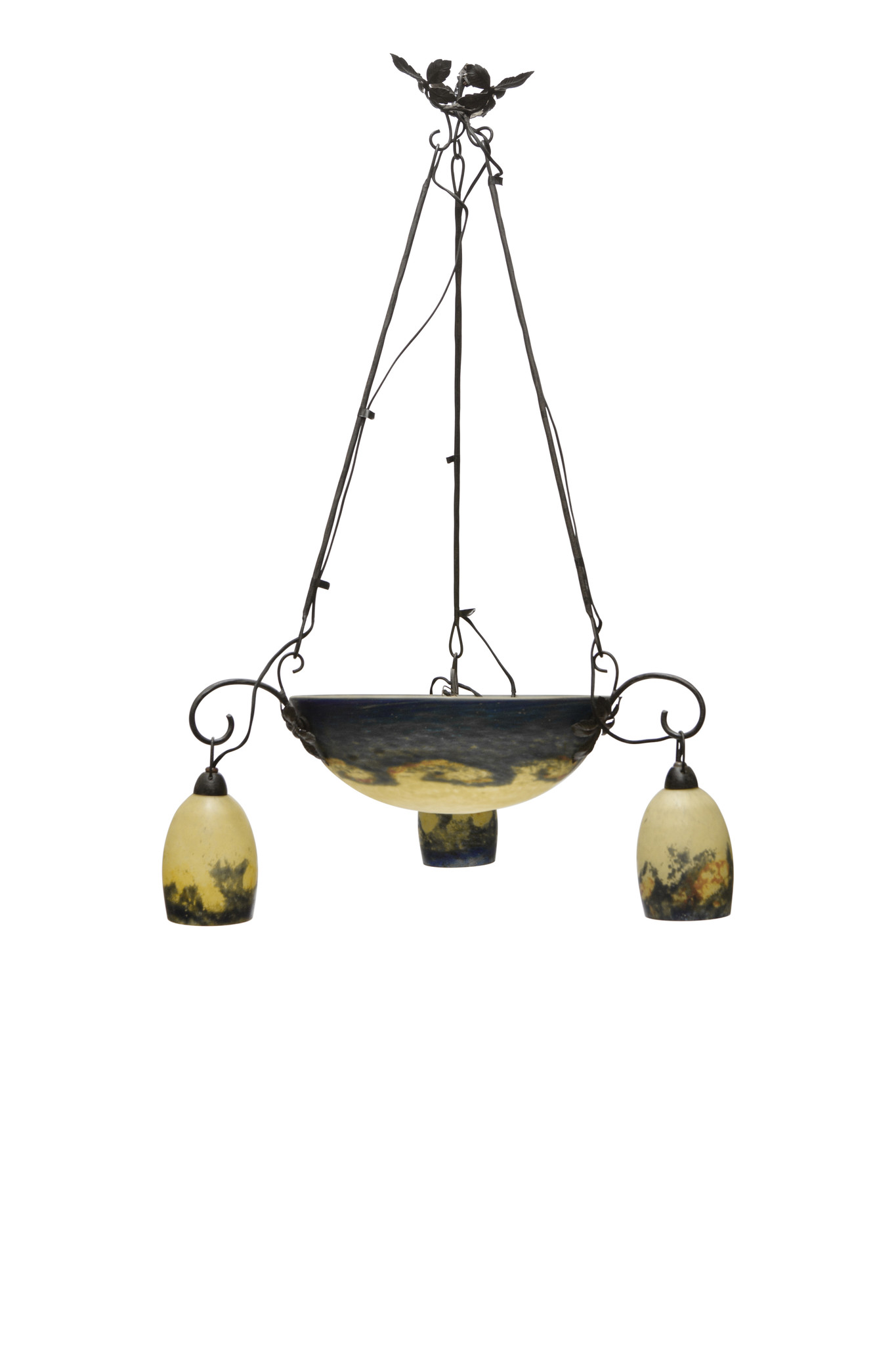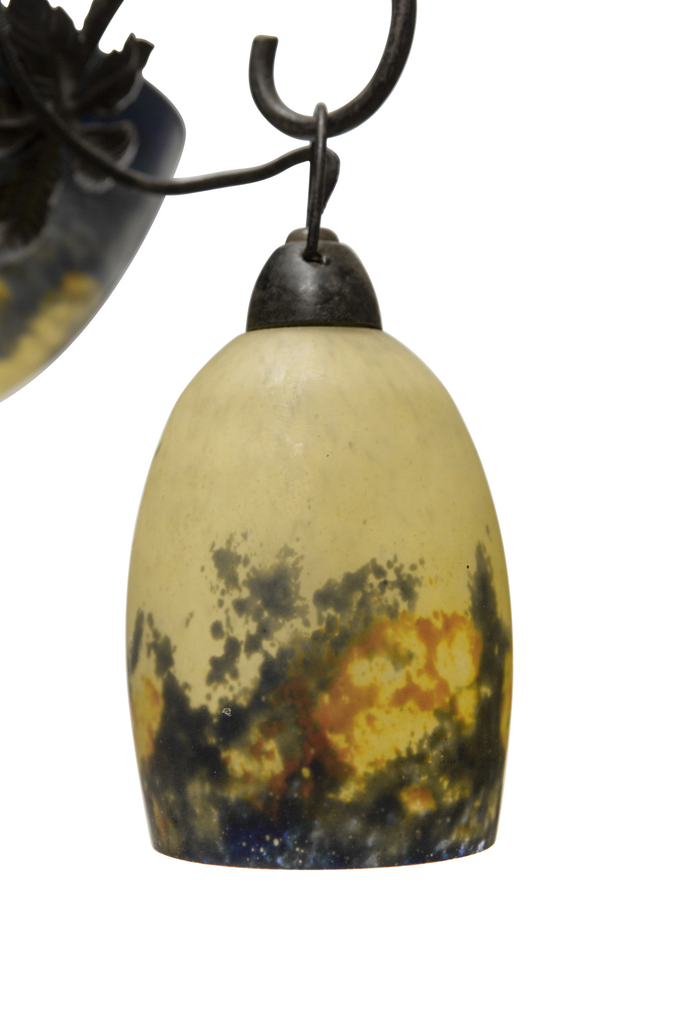 The mouth-blown glass has a yellow-blue colour and is signed "Delatte".