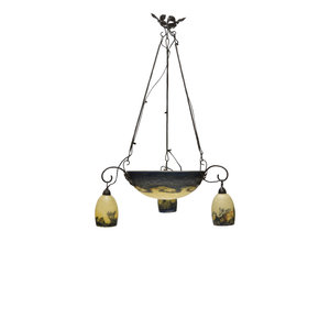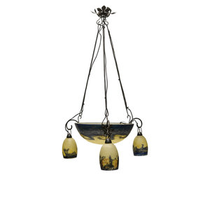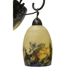 The mouth-blown glass has a yellow-blue colour and is signed "Delatte".