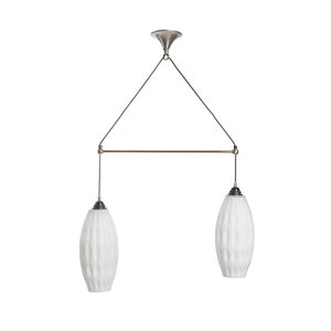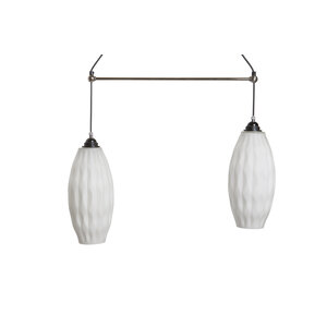 Two white glass lampshades, beautifully shaped, on a cord.