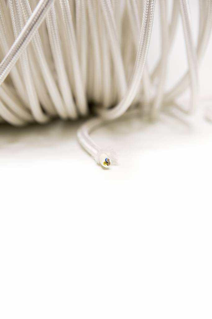 Lamp cable. Cord with a white fabric cover. This wire contains 3 cores (3x 0.75).