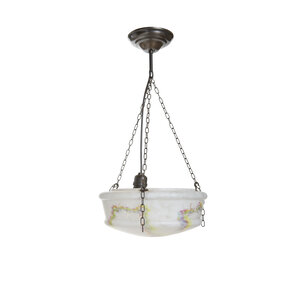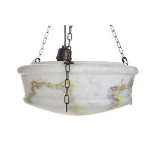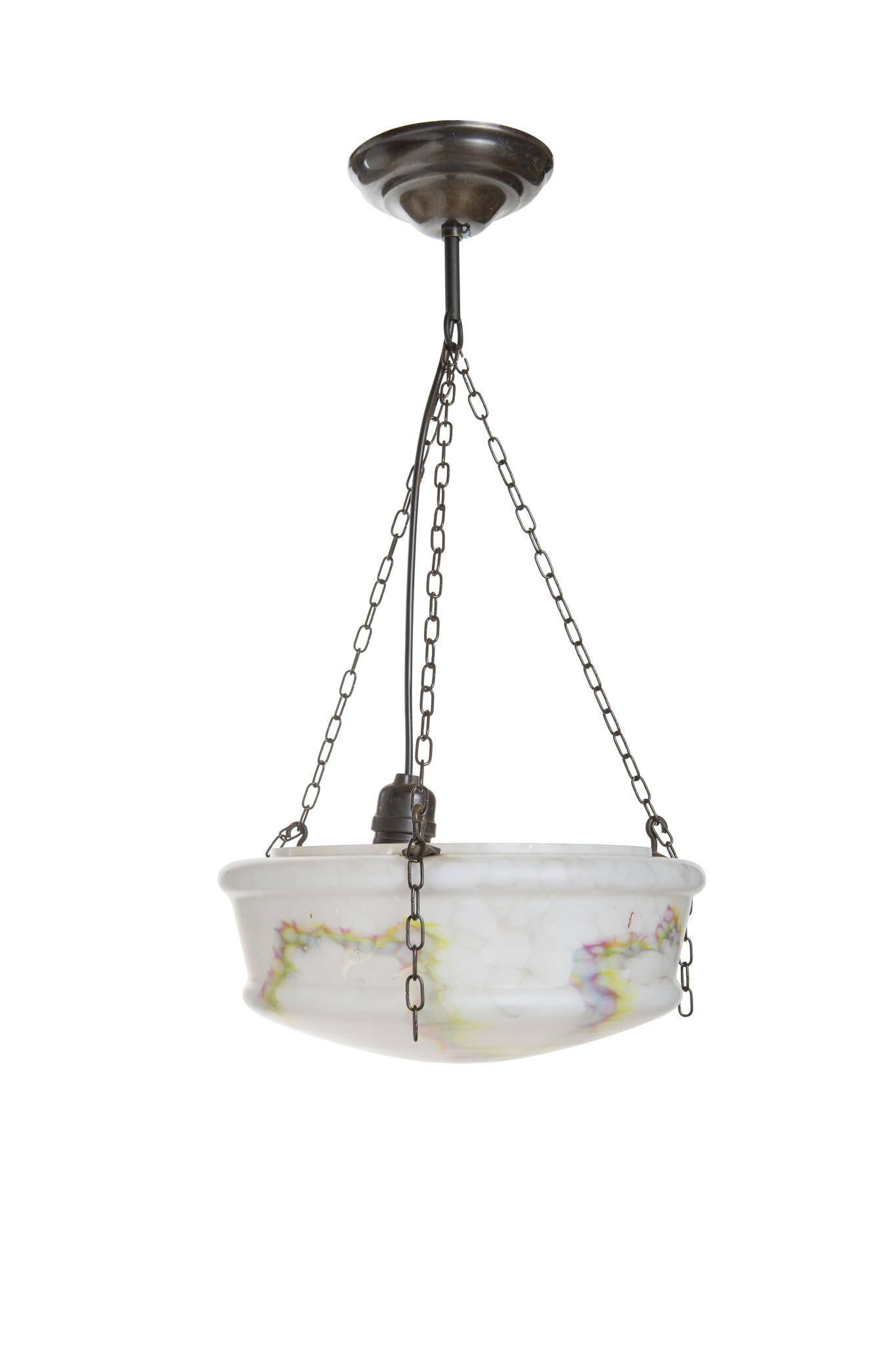 Beautiful 1930s hanging lamp. A white glass bowl with colored veins.