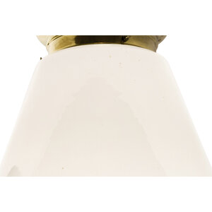 Very large ceiling lamp. A white glass shade (tapered shape) with a yellow copper fixture.
