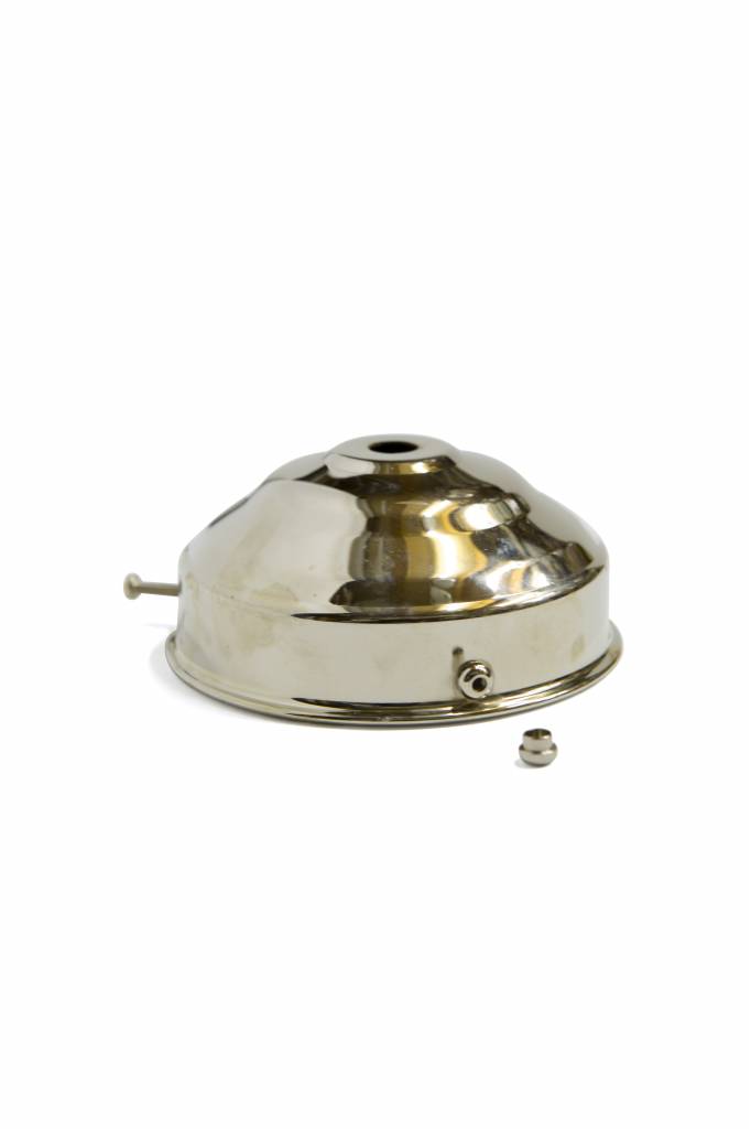Nipple, to be used to repair old / antique ceiling ring. Matt nickel, M3x1 internal thread. Sometimes you have a ceiling ring with 3 bolts / screws, where at 1 of the points the screw thread is missing. With this small part, you can (usually) fix that. See for clarification: the 4th / 6th photo. This is the very small part that sits on the ceiling ring / glass carrier and where the bolt is screwed in that clamps the glass cover.