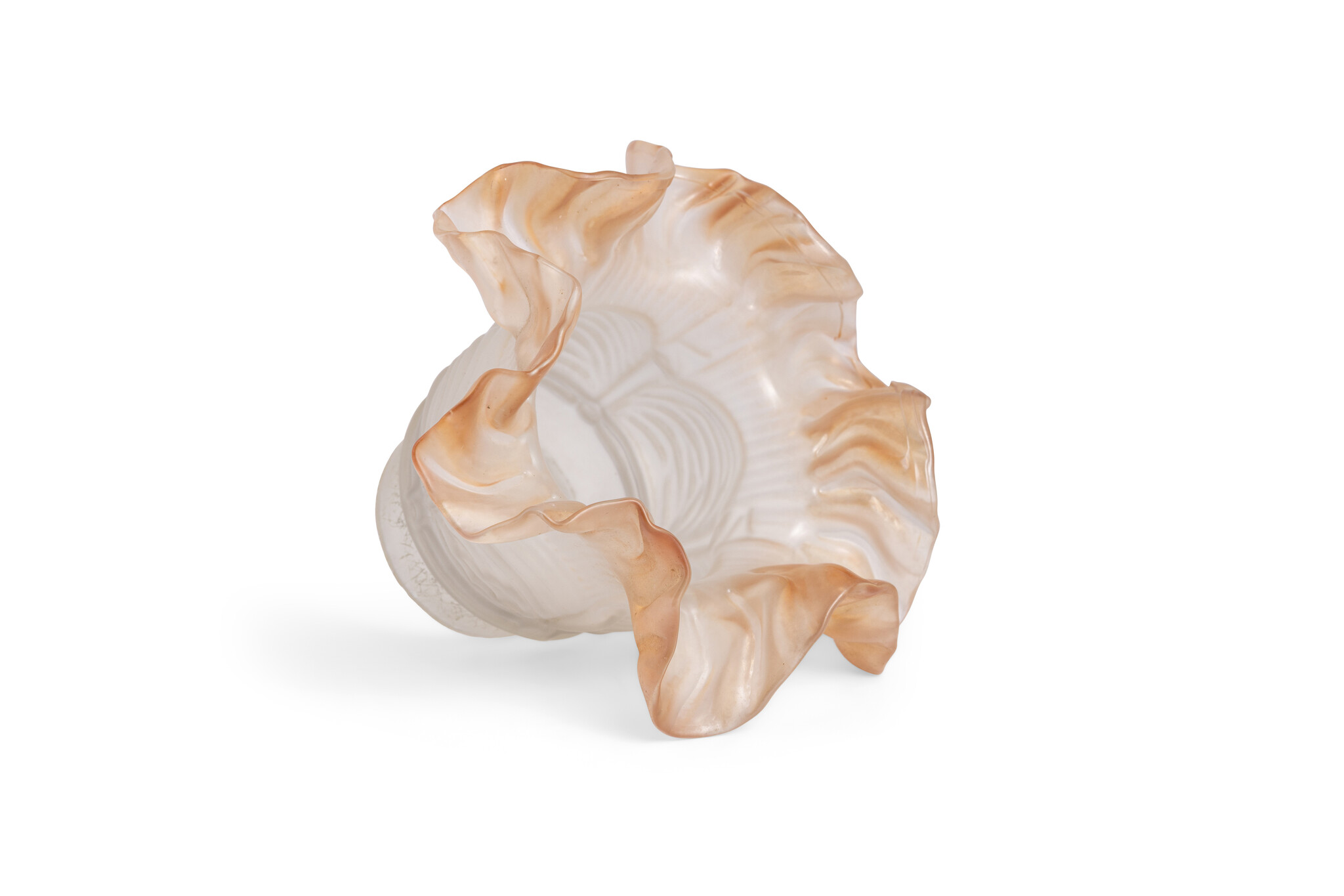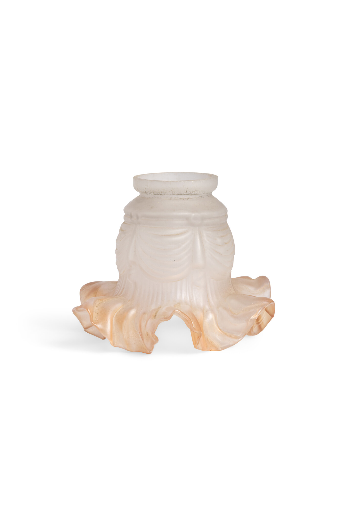 Old lampshade, a frosted glass skirt shade with a brown bottom edge.