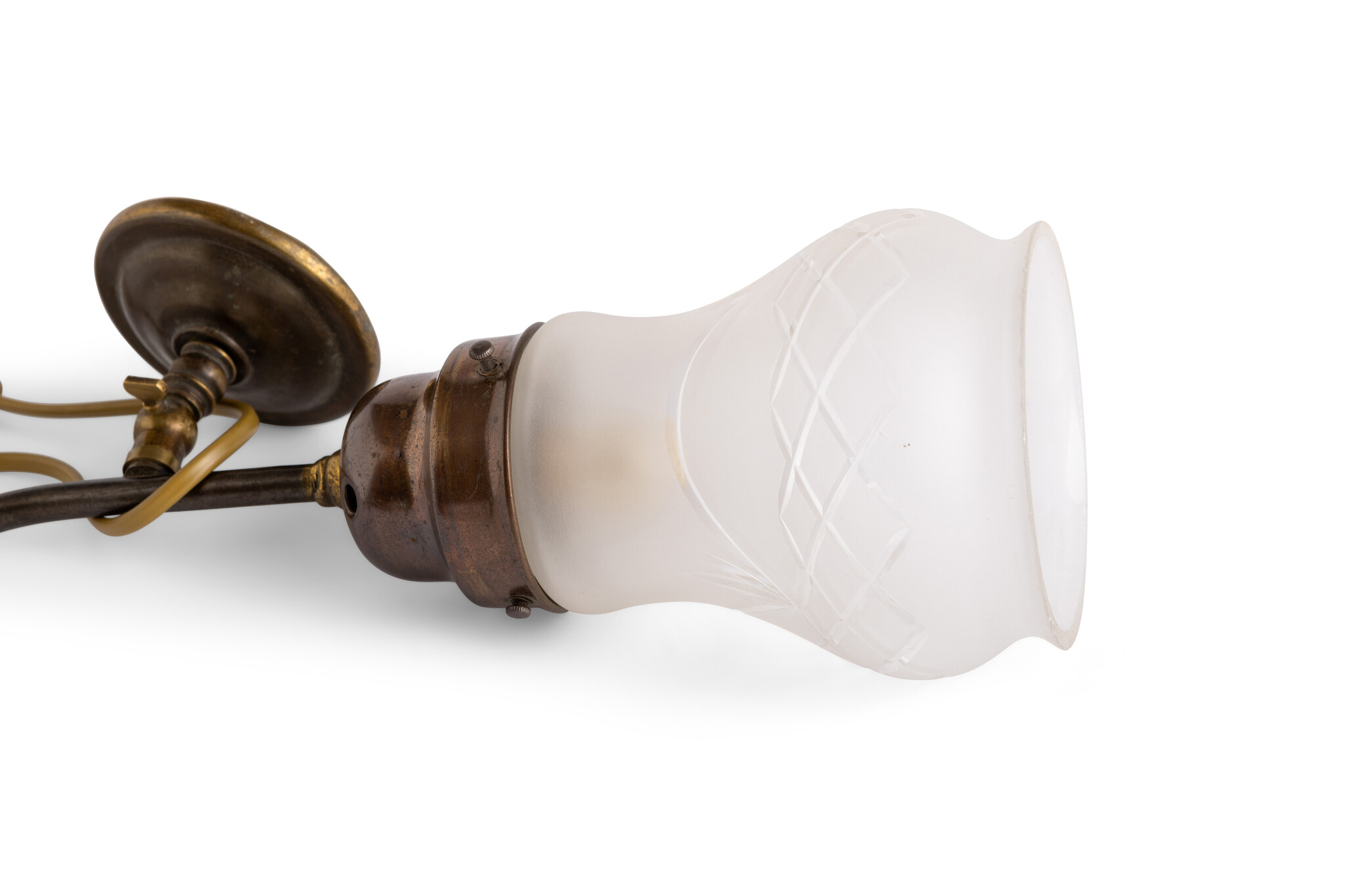 A burnished copper fixture with a frosted glass shade.