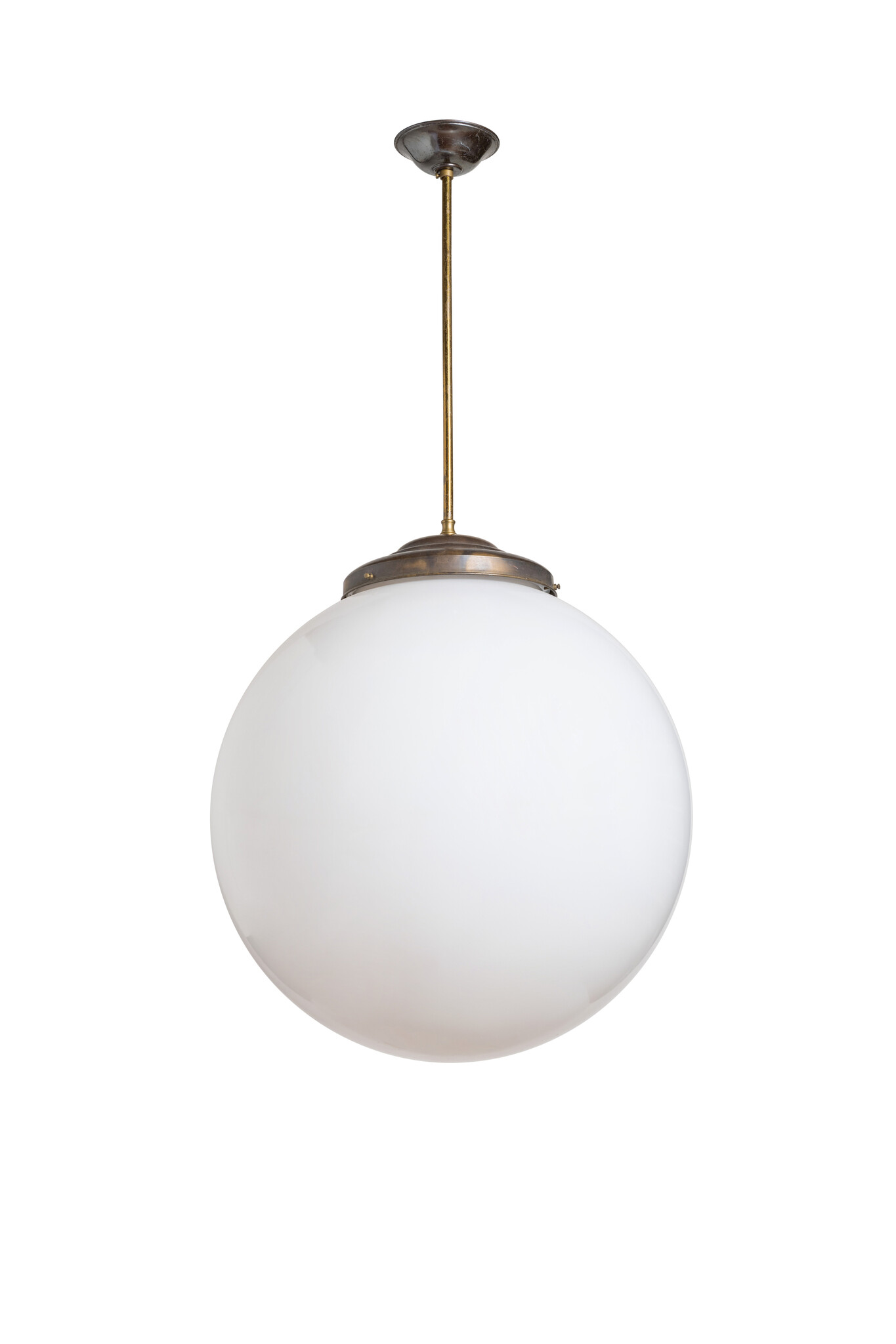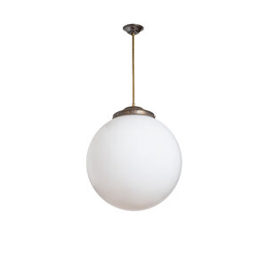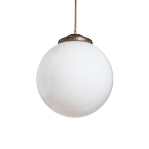 A brown-colored fixture with a white glass ball.
