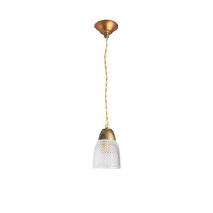 Glass shade hangs on a gold twisted fabric cord.