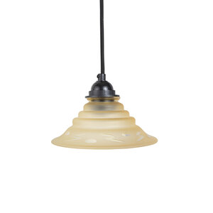 The glass lampshade is light brown/ochre colored and has a small pattern, see the photos.