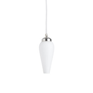 White glass shade on cord.