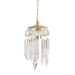 The hanging lamp hangs on a gold-coloured twisted cord.