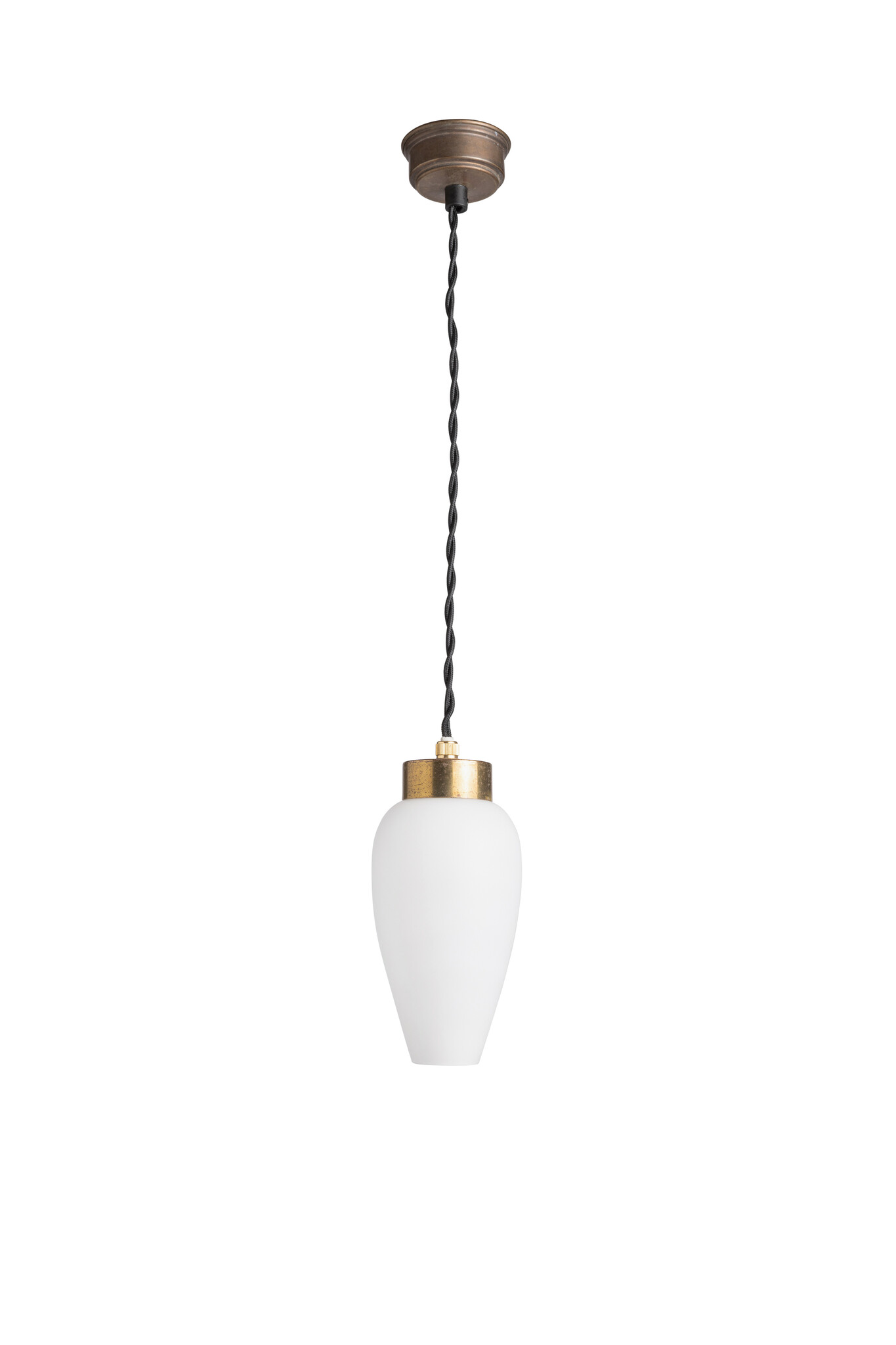 Simple white glass hanging lamp. Placed around the 1950s-60s.