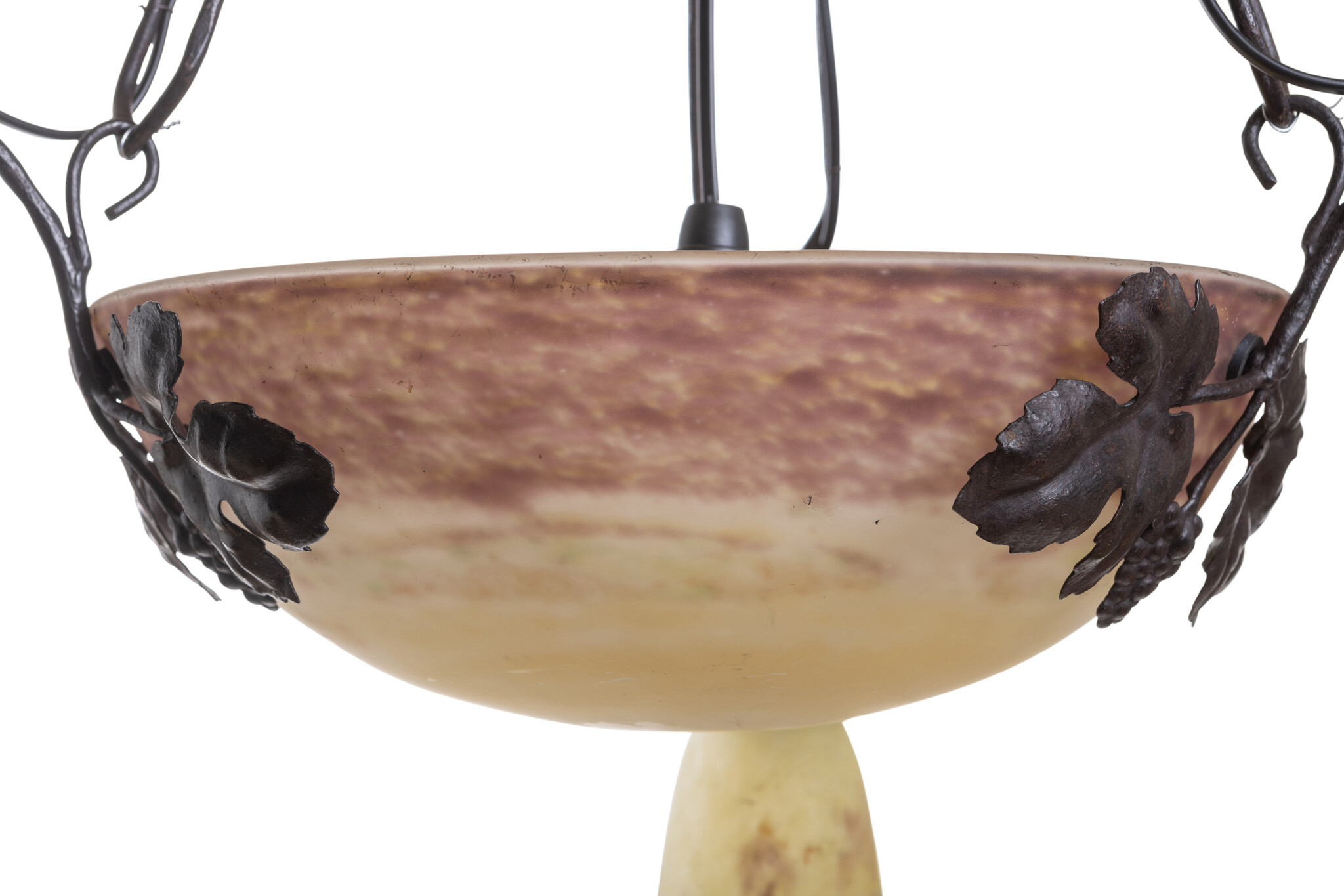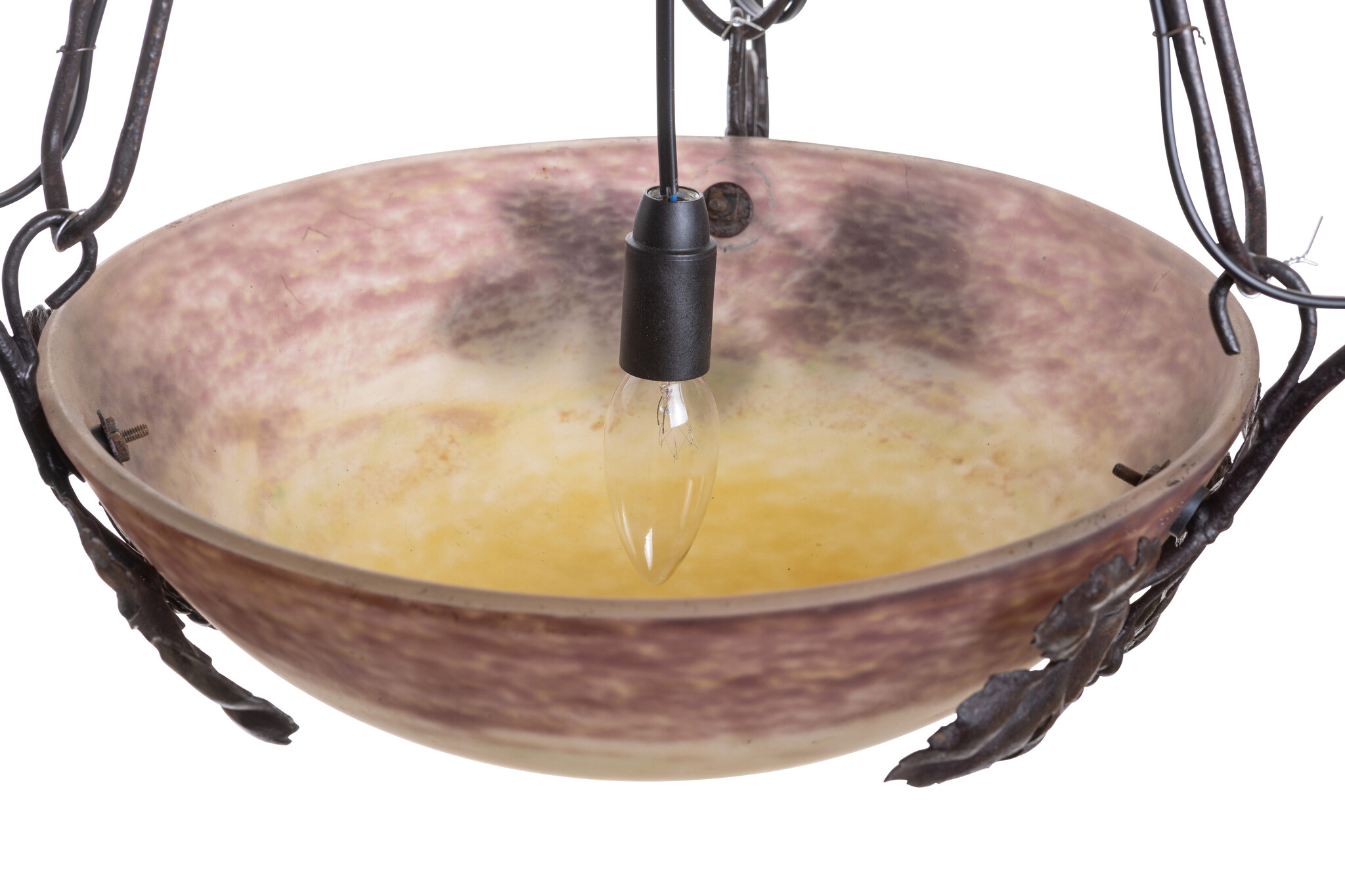 The glass is yellow-purple and gives warm and atmospheric light when the lamp is on.