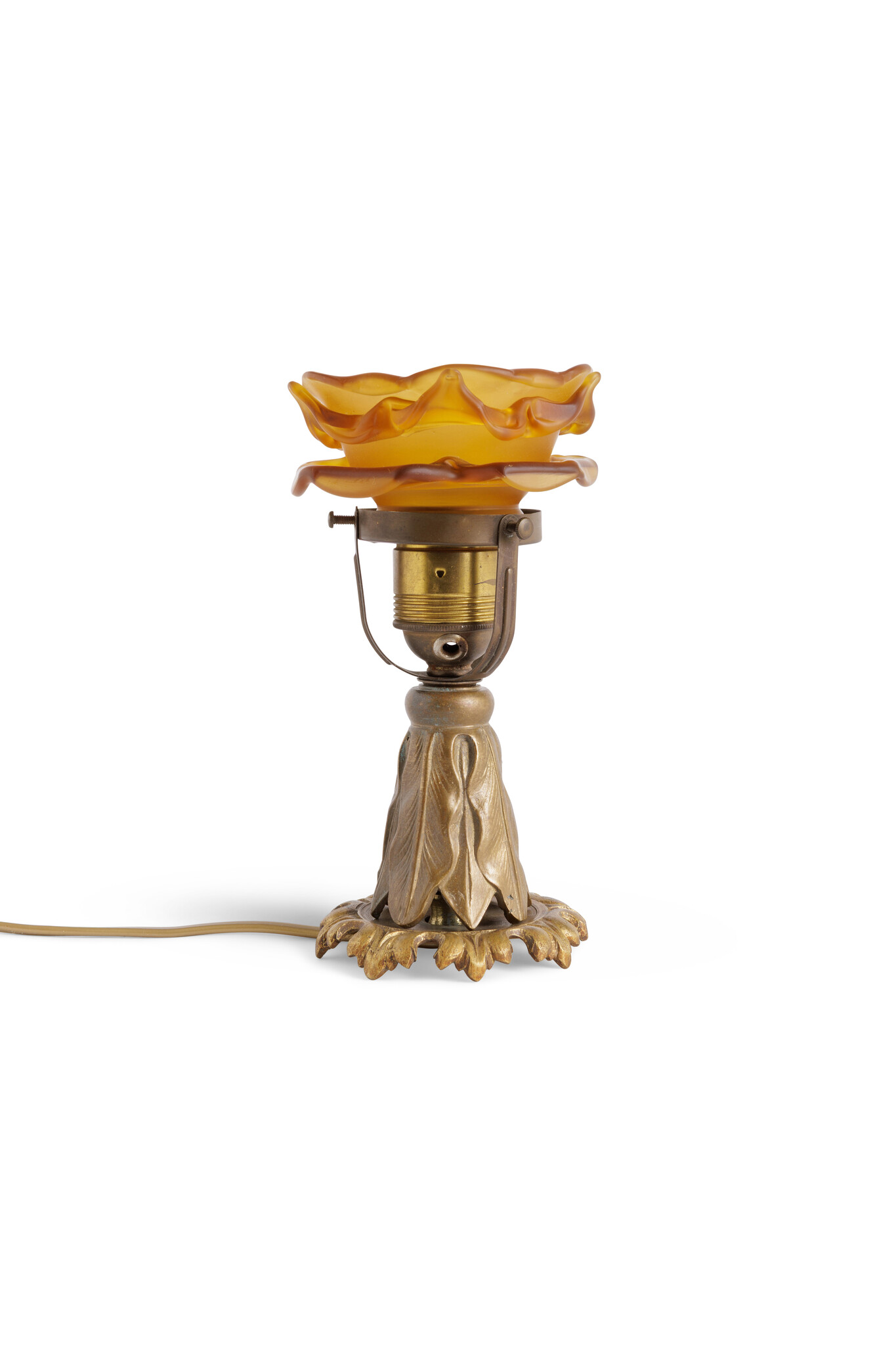 The botanical theme is carried through to the base, where the stem and foundation consist of elegant, overlapping leaves.
