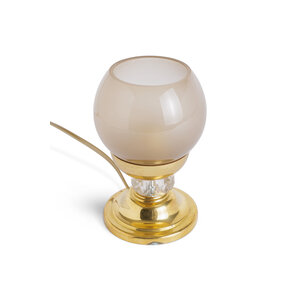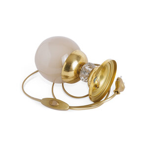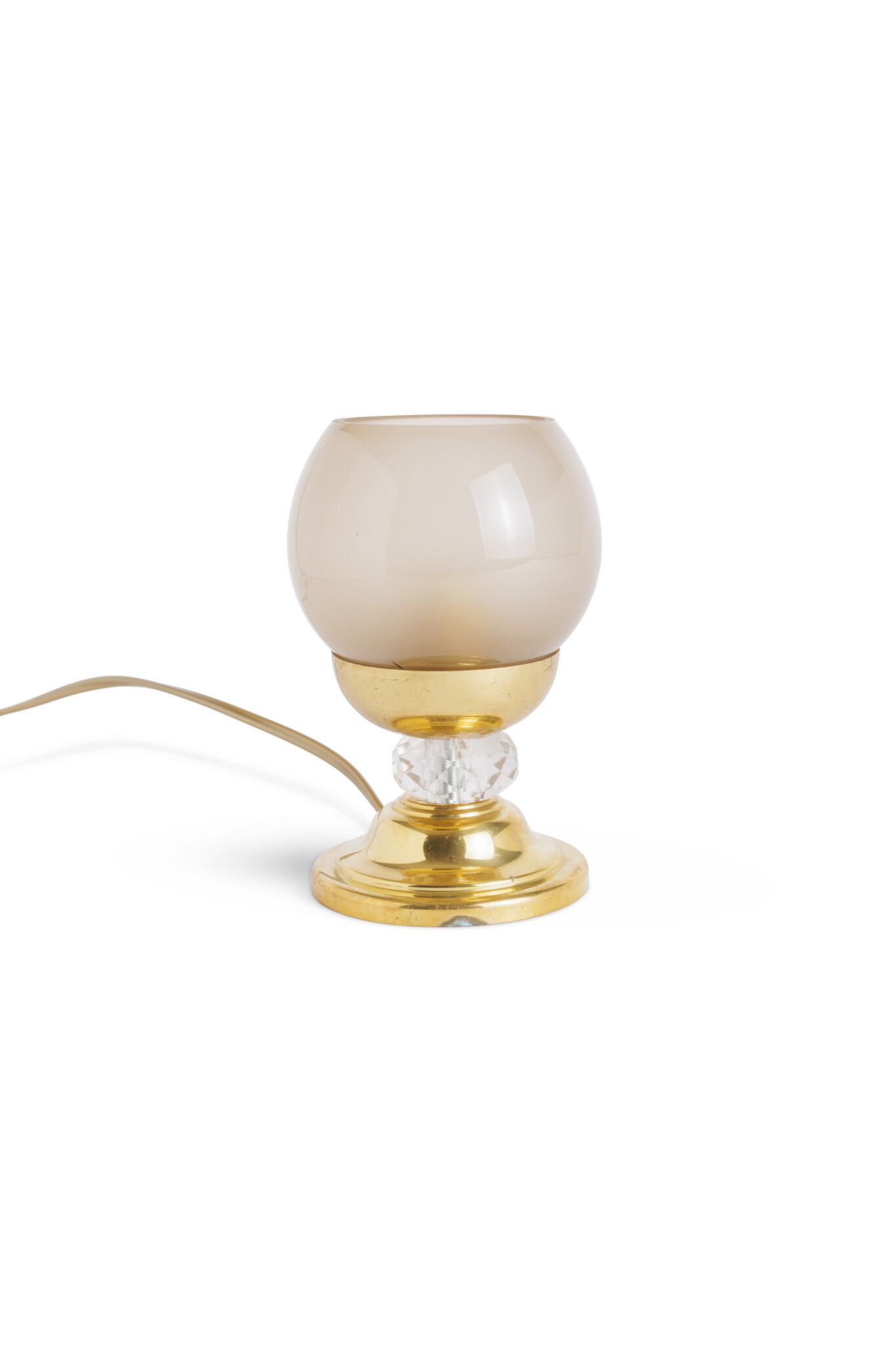 The spherical smoked glass shade has a warm café-au-lait tint, providing very atmospheric and soft lighting.