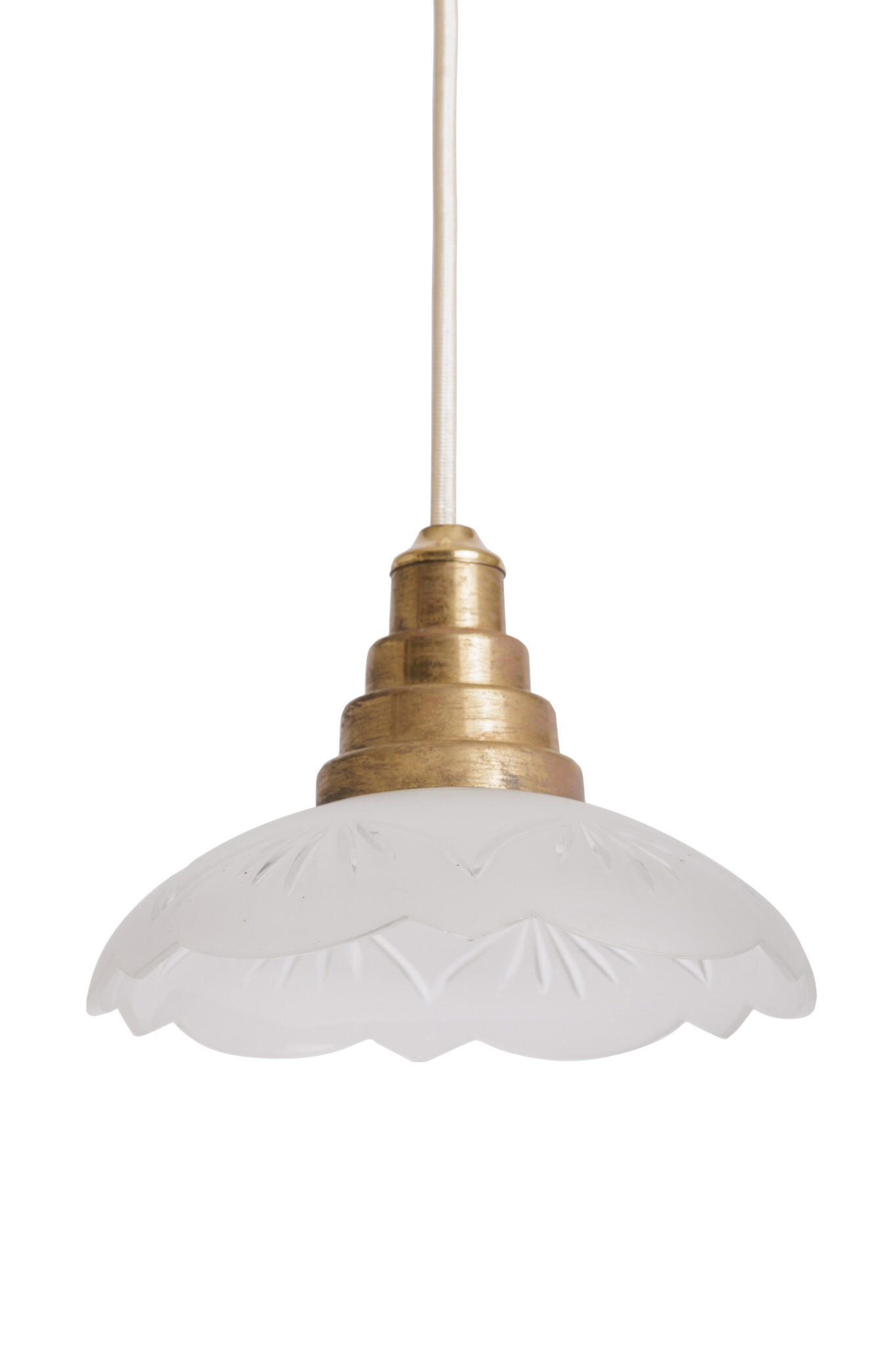The shade is made of frosted glass and beautifully decorated with cut patterns.