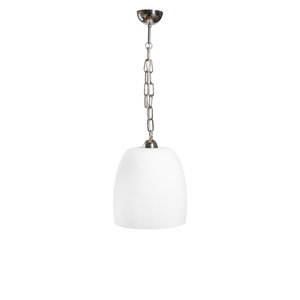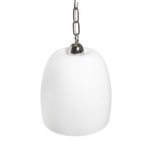 Vintage hanging lamp from the sixties. A matte white glass shade on a silver-coloured chain.