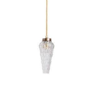 A clear glass shade, beautiful in shape, tapering towards the bottom.