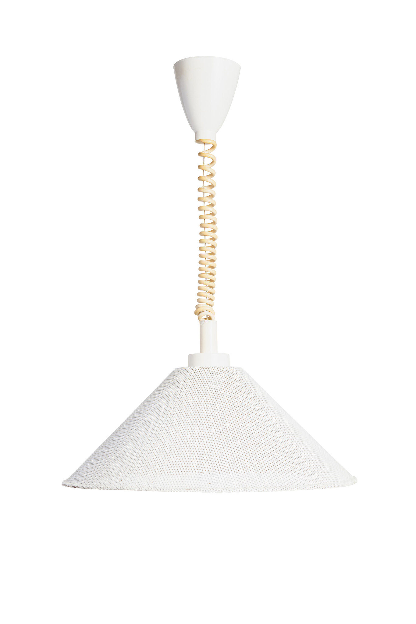 Vintage pendant lamp, white metal mesh shade
