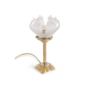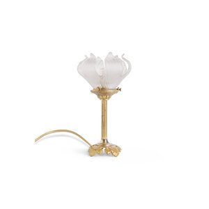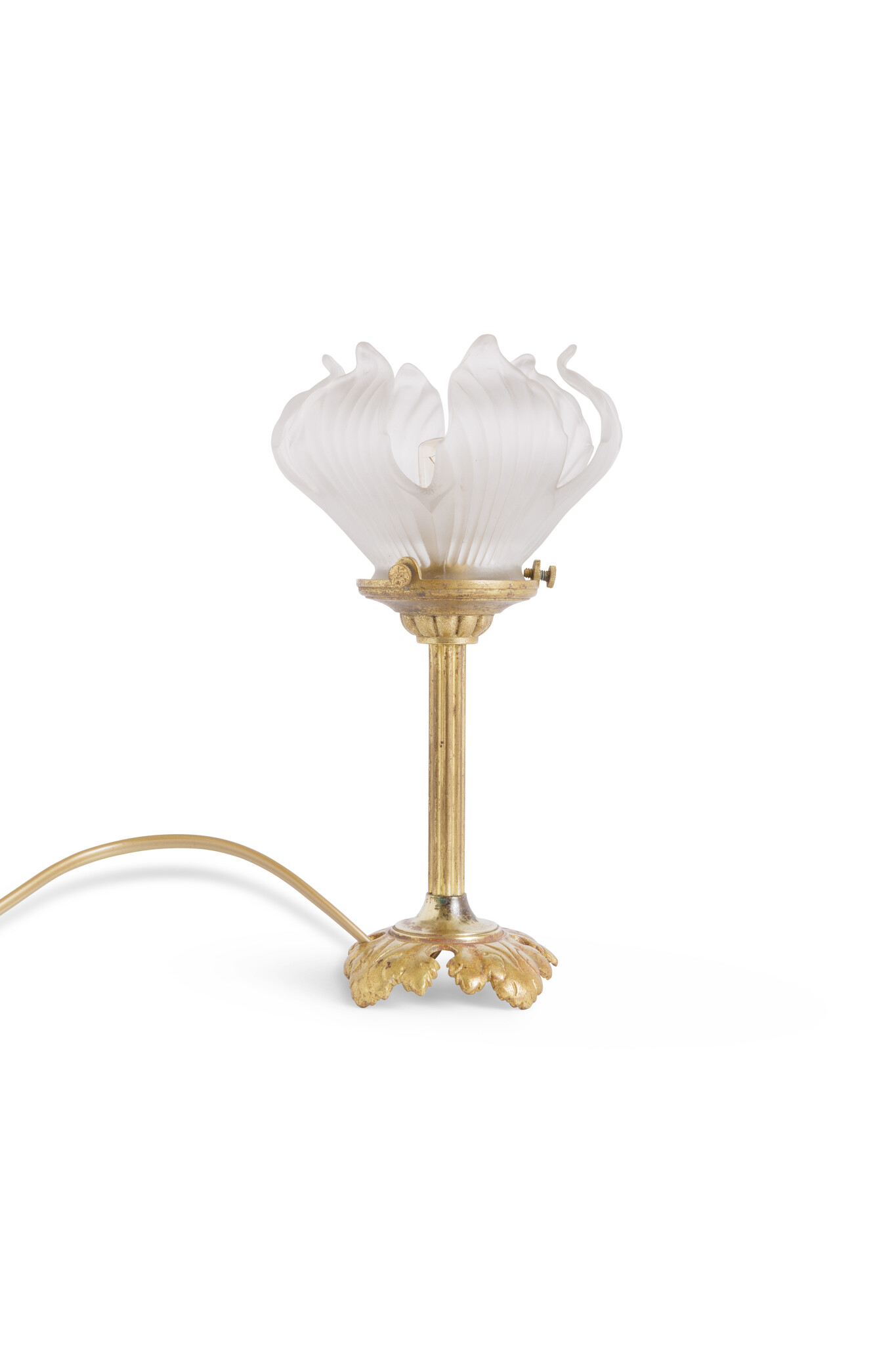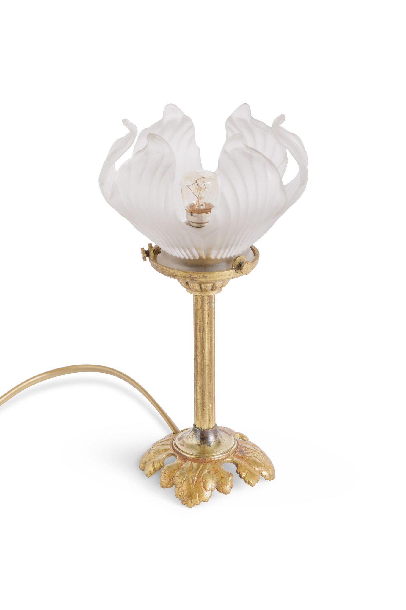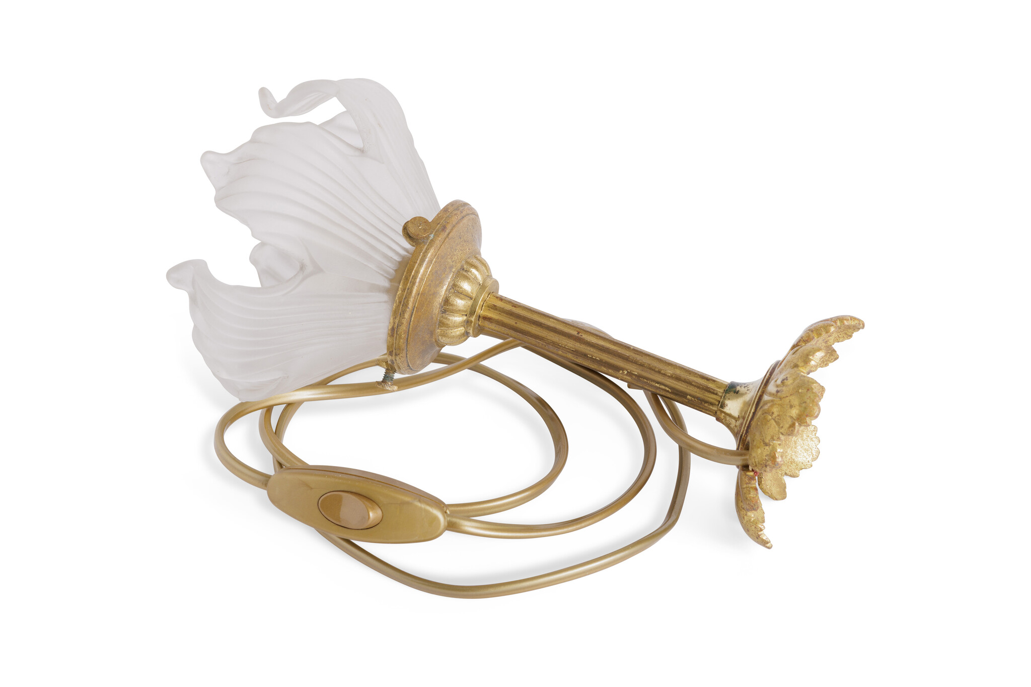 Het goudkleurige koperen armatuur is voorzien van een prachtig gedetailleerd voetje.