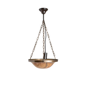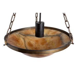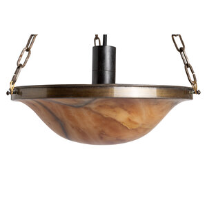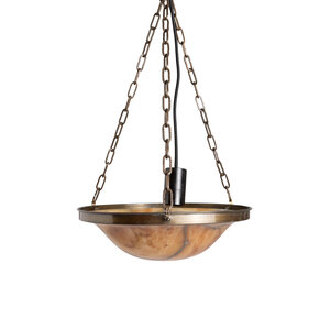Een albasten schaal aan drie kettingen.