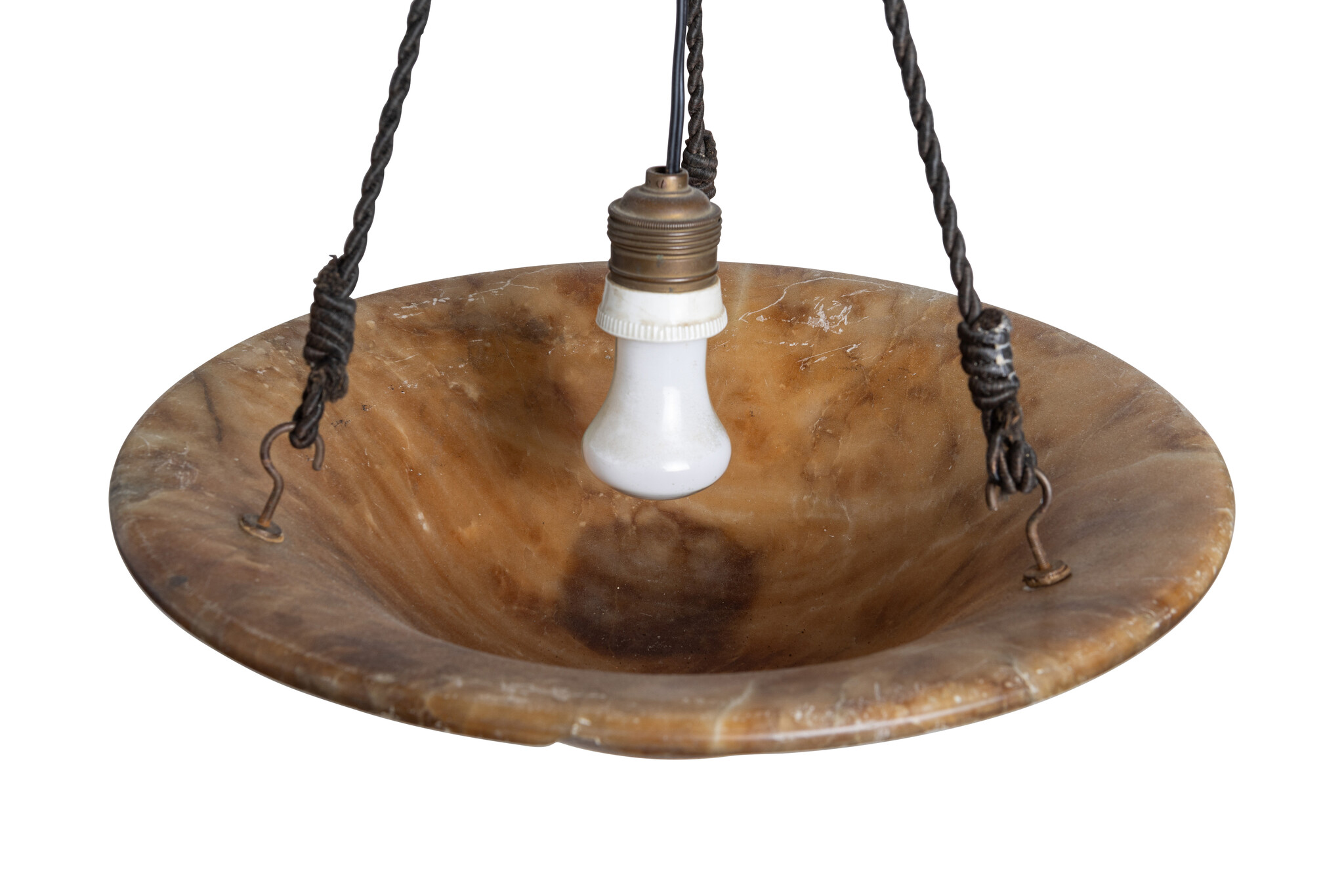 Een albasten schaal aan touw.