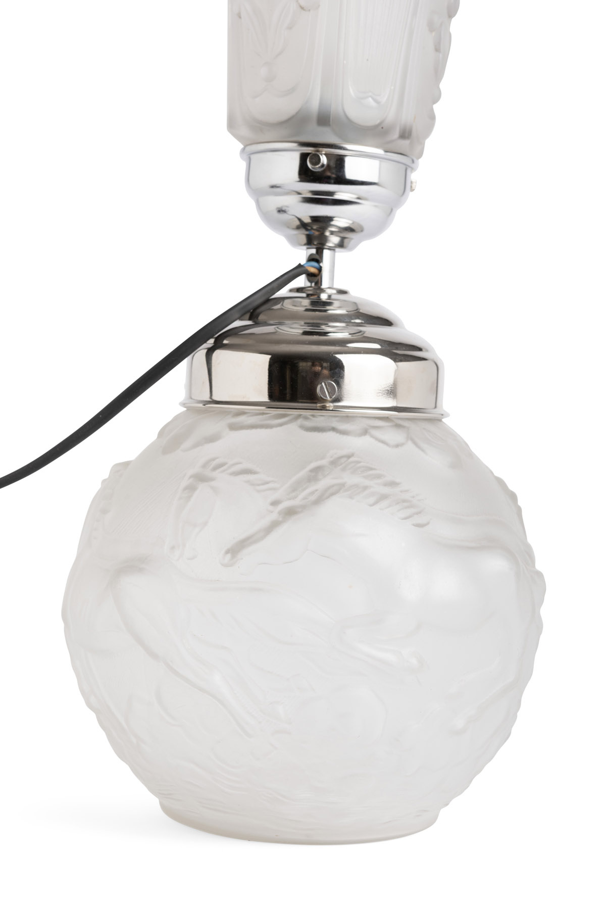 Op de voet van het glas kun je paarden zien.