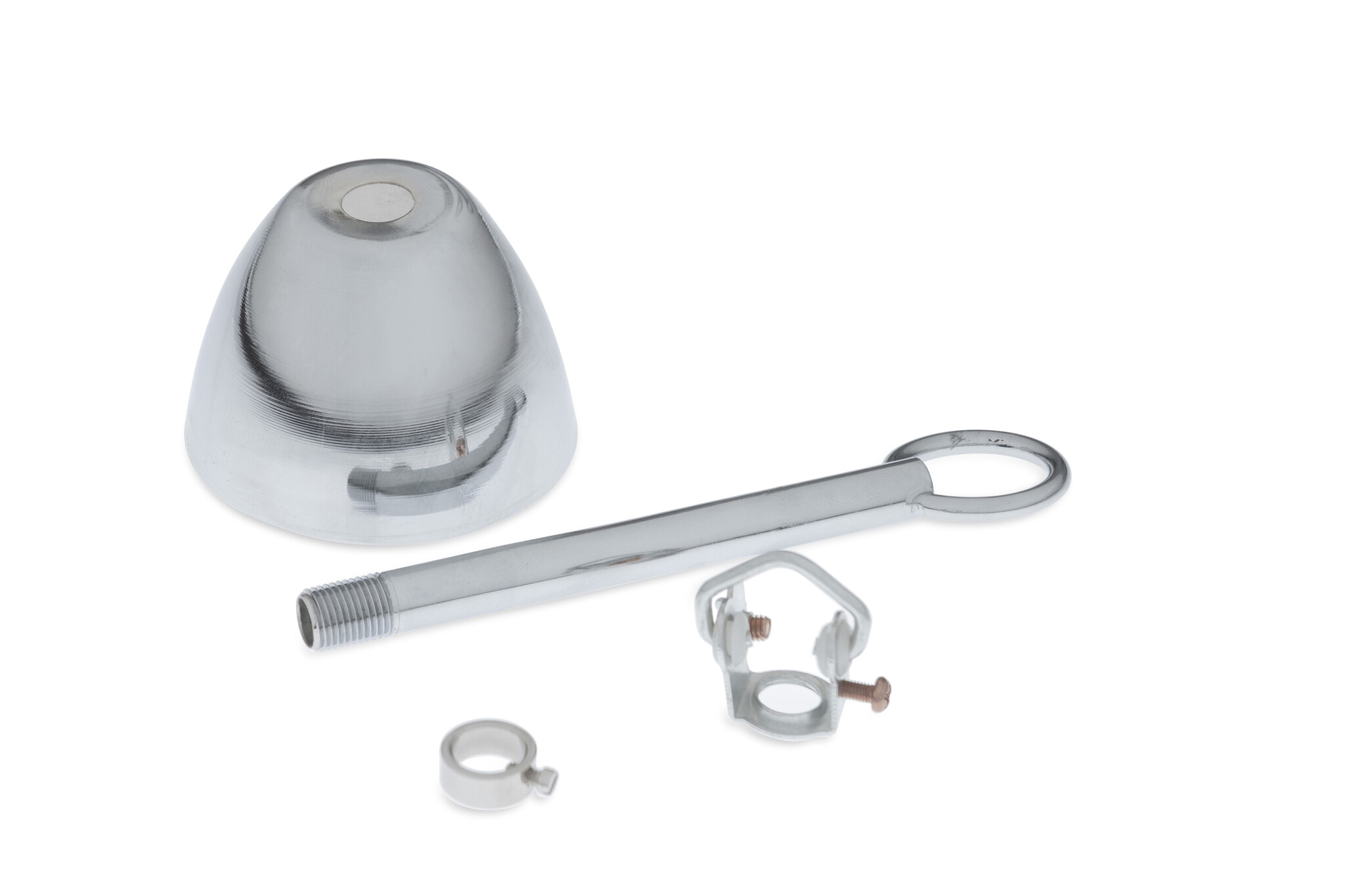Klein plafondplaatje, glimmend chroom.