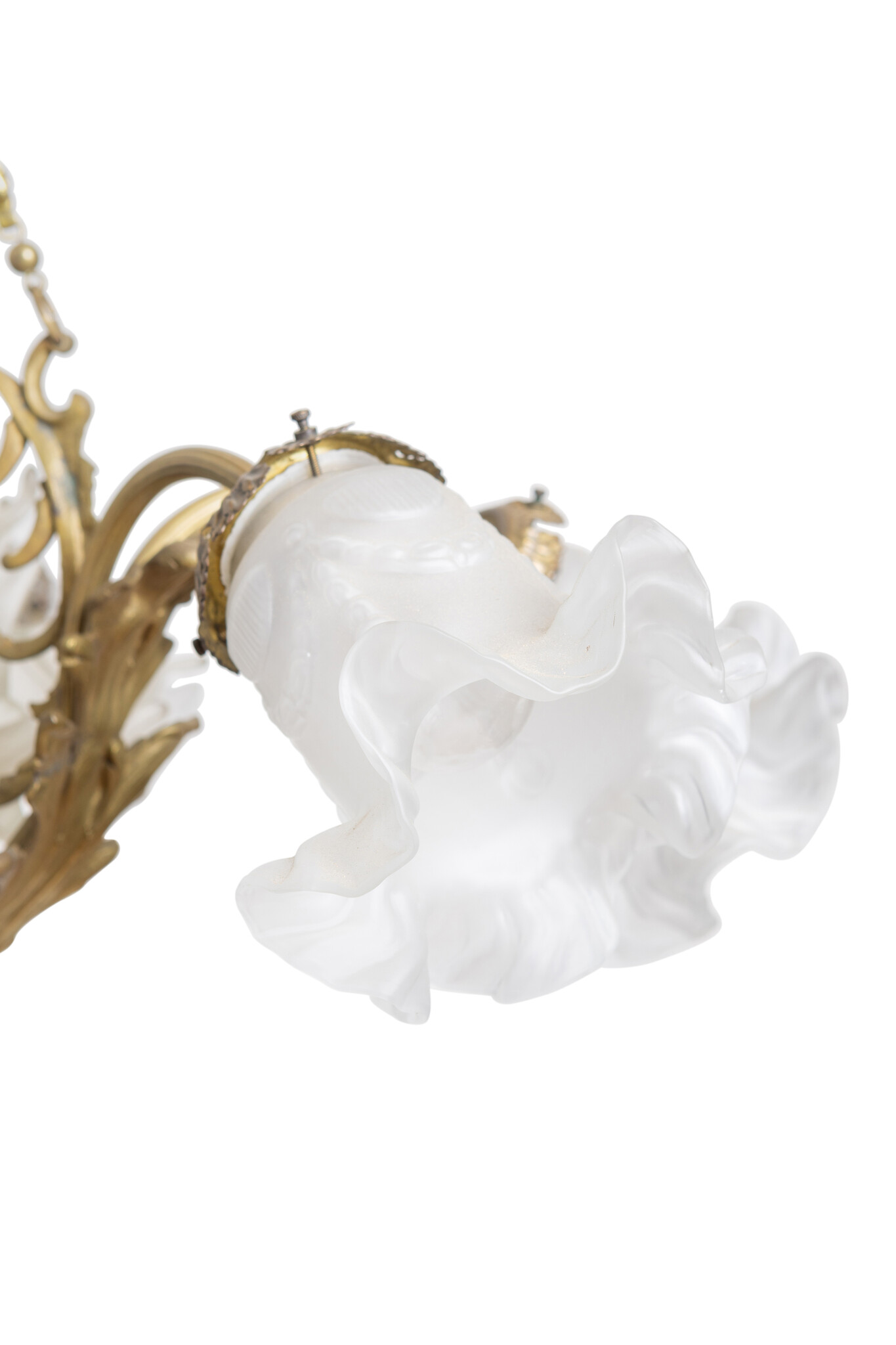 De matglazen rokkapjes worden afgewisseld door kleine mat glazen roosjes.