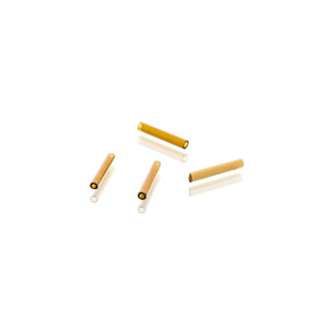 Deze langwerpige kralen van circa 3.0 cm hebben een variabel karakter, met een diameter die wisselt tussen de 0,3 en 0,5 cm.