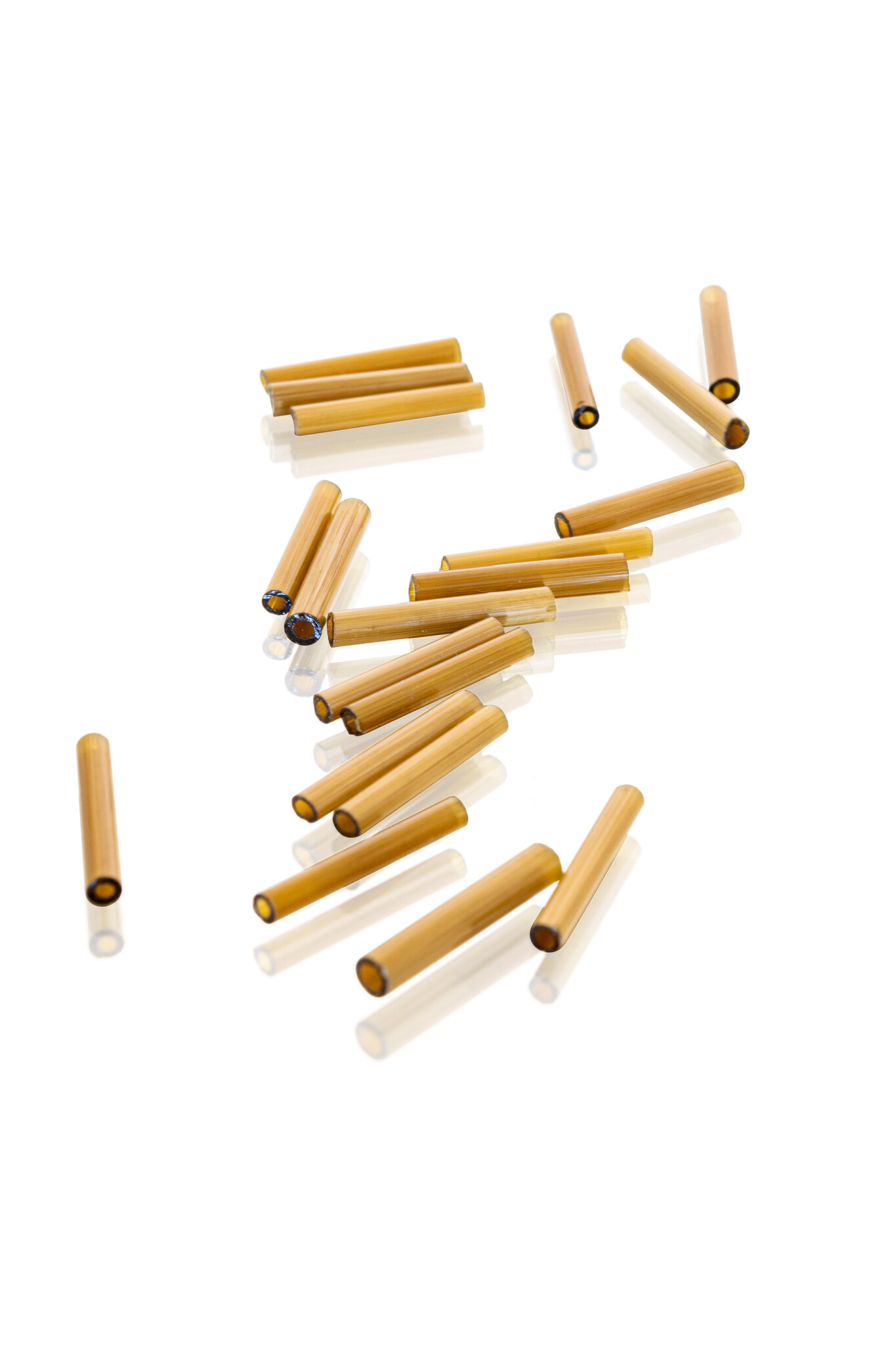 Vintage goudkleurige glazen cilinders (3.0 cm) - Zakje van 20 stuks