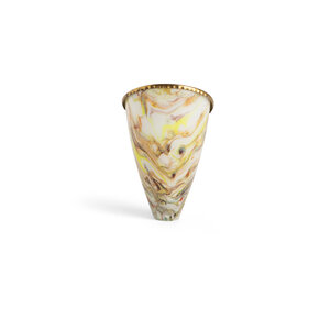 De onderkant van de glazen lampenkap heeft een messing sierrand.