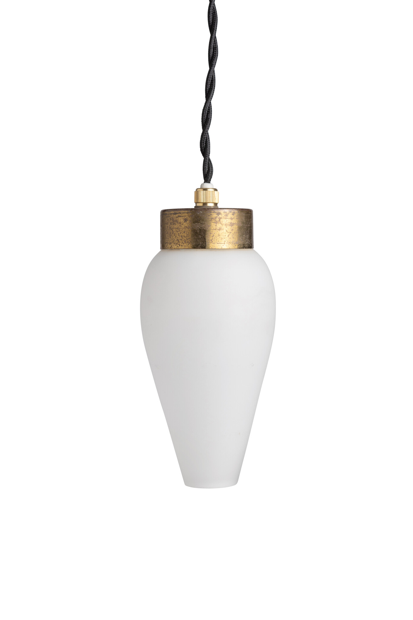 Het glazen kapje hangt aan zwart gevlochten stoffen snoer.
