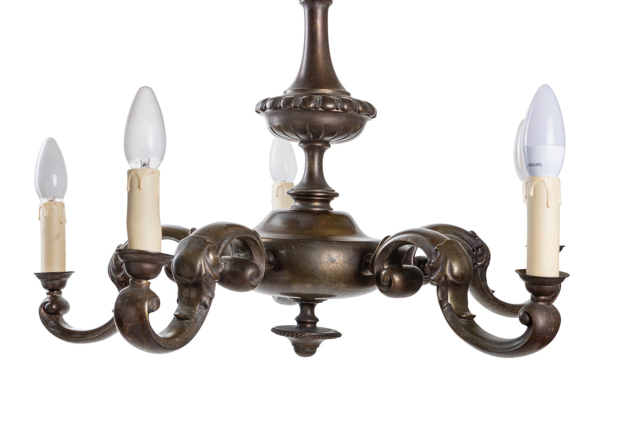 Bronzen luster met 5 armen.