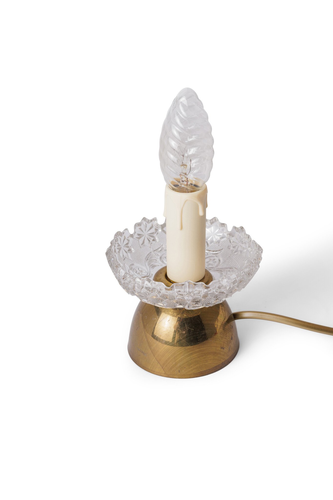 Dit compacte boudoir lampje van 13 cm hoog is een kleine schat. De goudkleurige messing voet geeft het een luxe, antieke uitstraling, maar de echte ster is het glazen bakje.