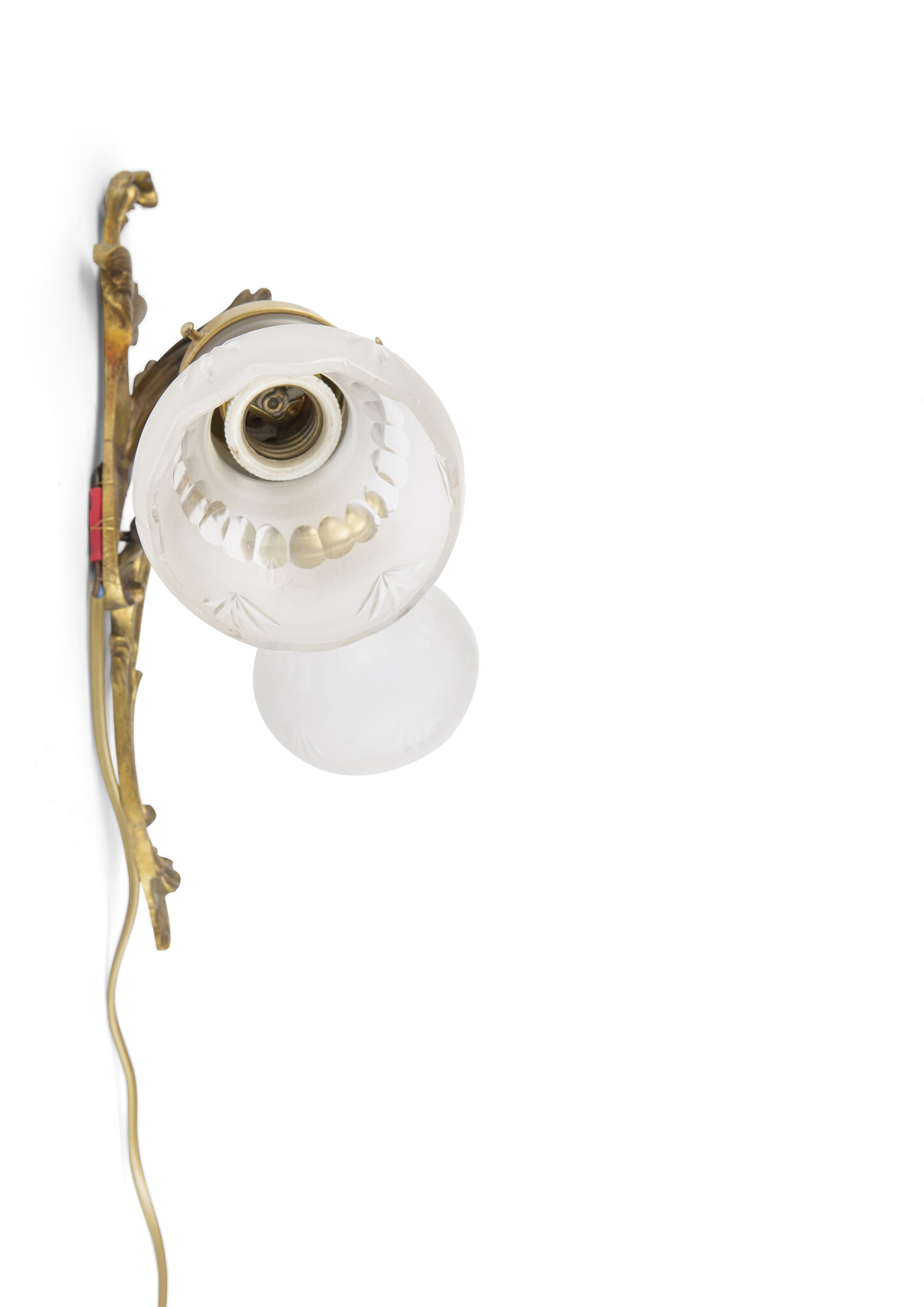 Goudkleurig messing armatuur met geslepen glazen kapjes.