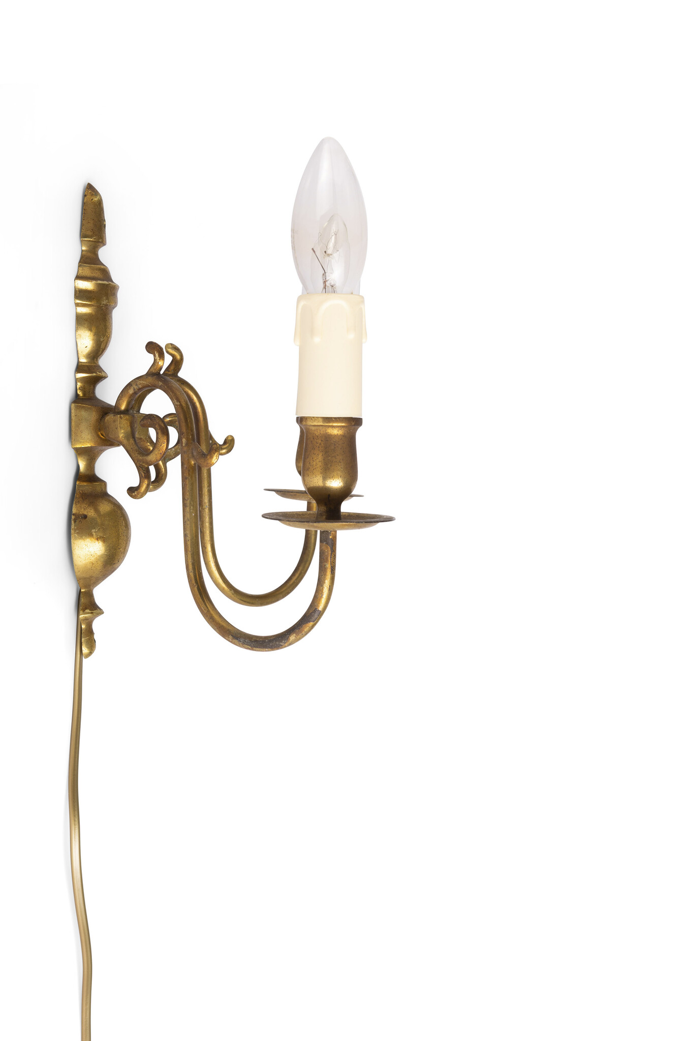 De wandlamp heeft twee armen met (elektrische) kaarsen.