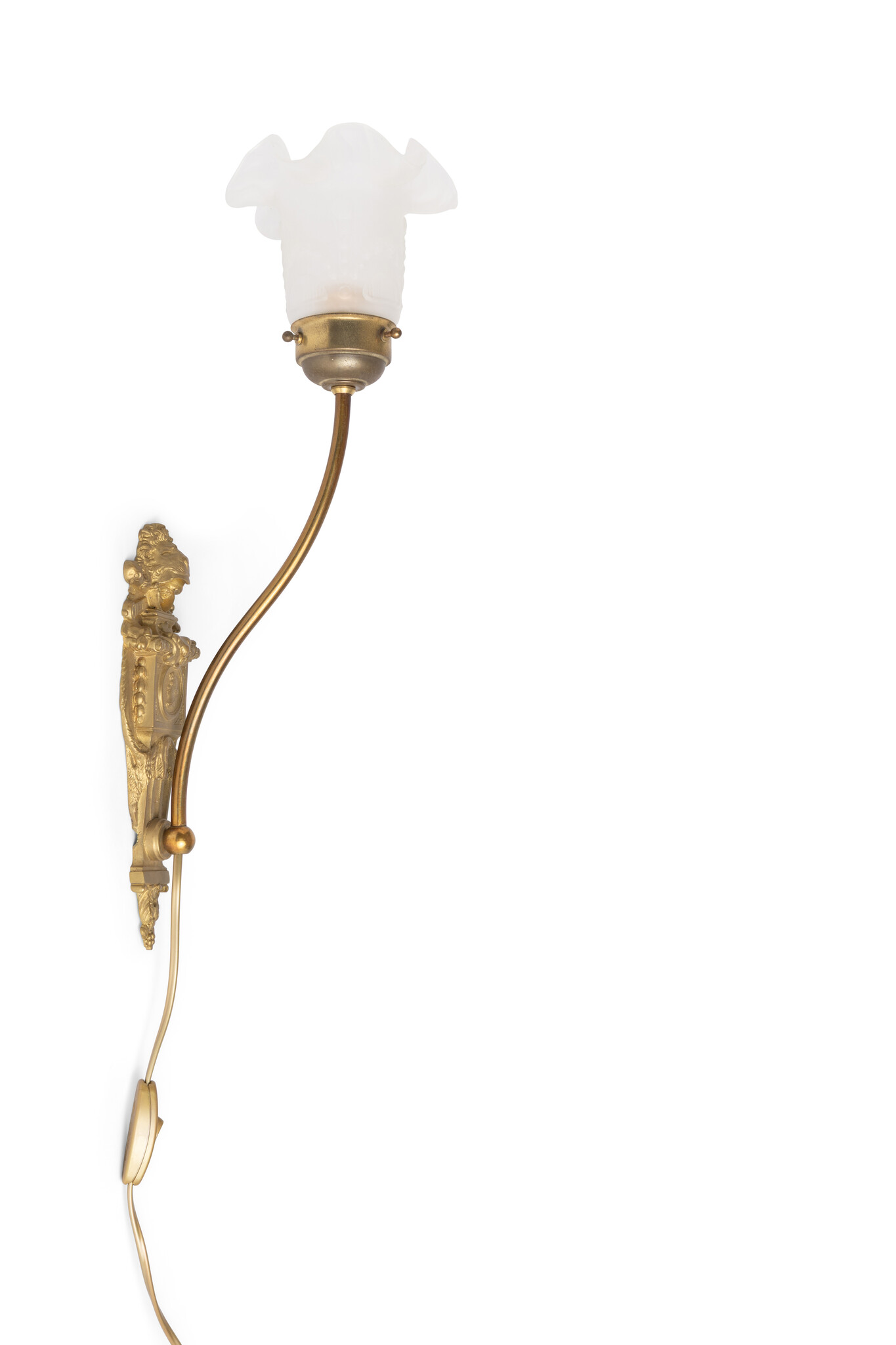 De wandlamp is voorzien van een goudkleurig snoer met stekker en schakelaar.