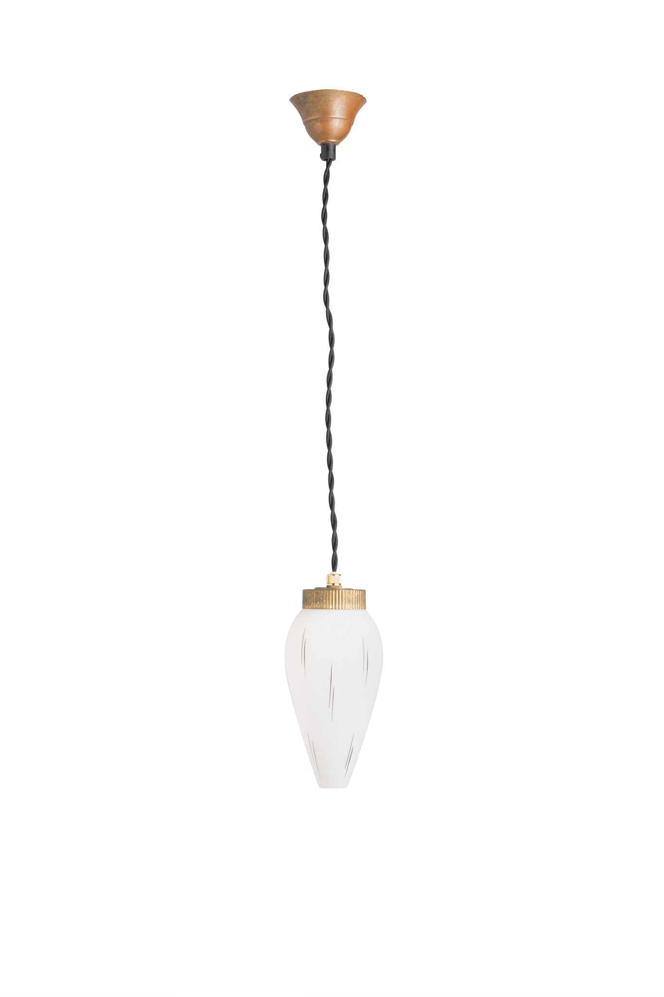 Klein retro hanglampje, wit glas met zwart streepje