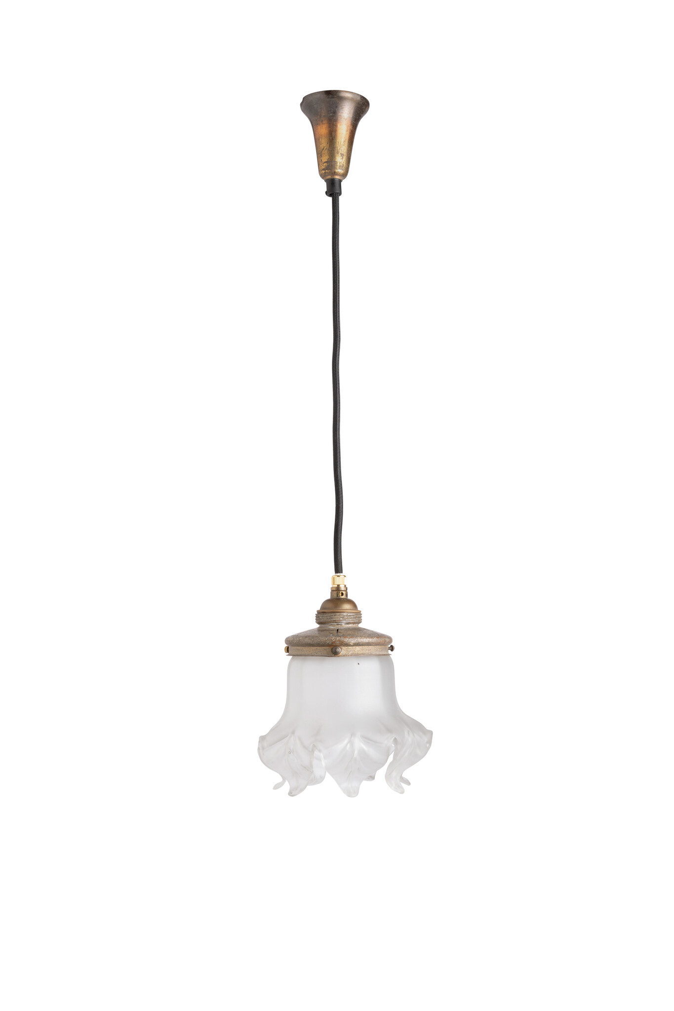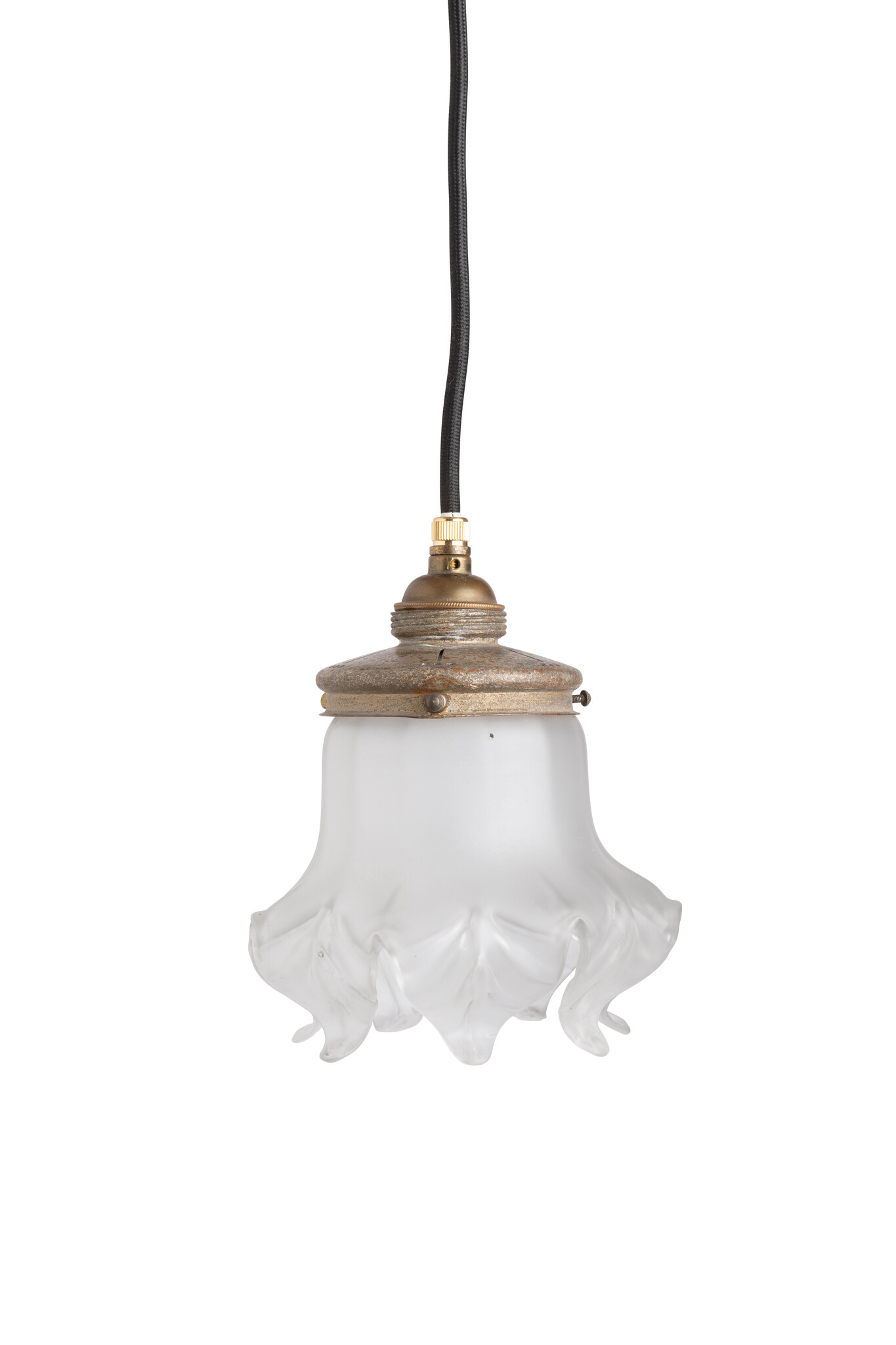 Hanglampje heeft een mooi gevormd koperen houdertje.