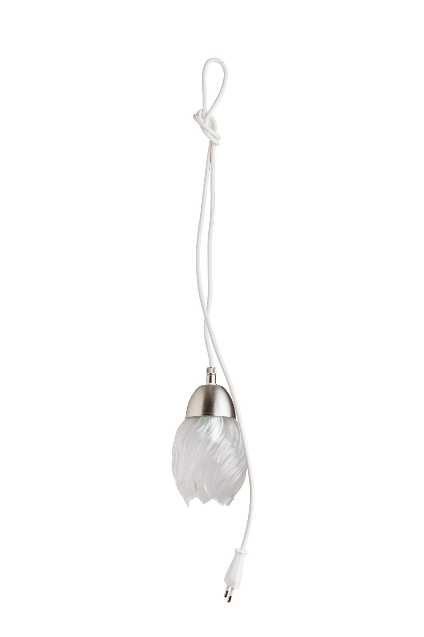 Mat glazen kapje in de vorm van een vlammetje aan koord.