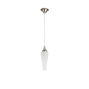 Glazen kapje hangt aan wit rond stoffen snoer.